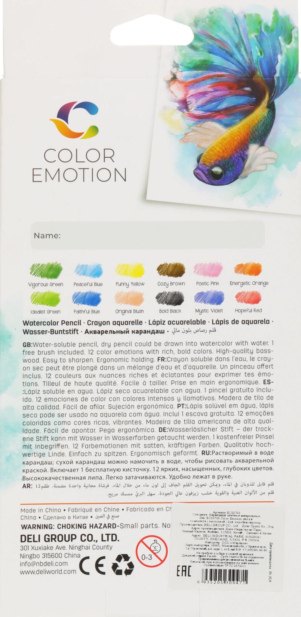 Карандаши цв. Deli EC00700 Color Emotion акварель. липа 12цв. коробка/европод.