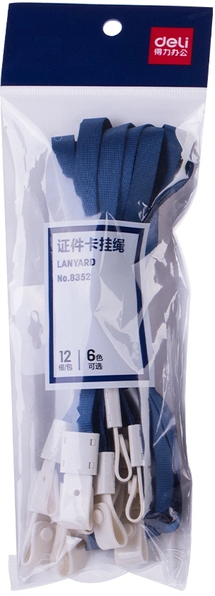 Шнур для пропуска Deli 8352blue 45х1см нейлон синий (упак.:12шт) пластиковый пакет (Только Упаковками 8)