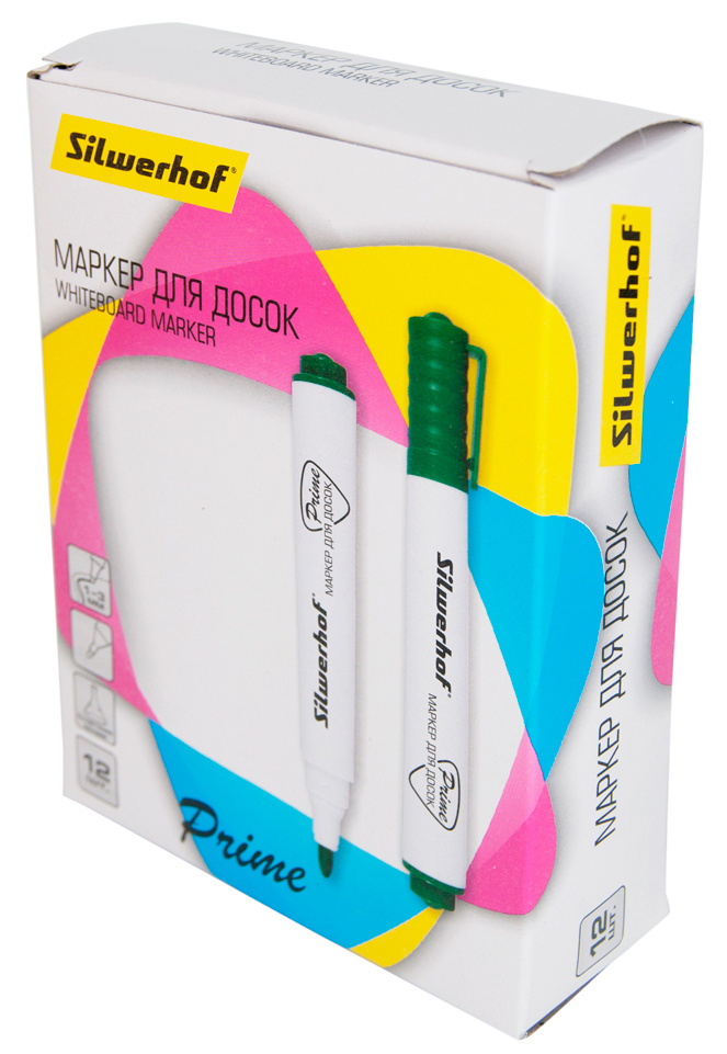 Маркер для досок Silwerhof Prime пулевидный пиш. наконечник 1-3мм зеленый коробка (Только Упаковками 12)