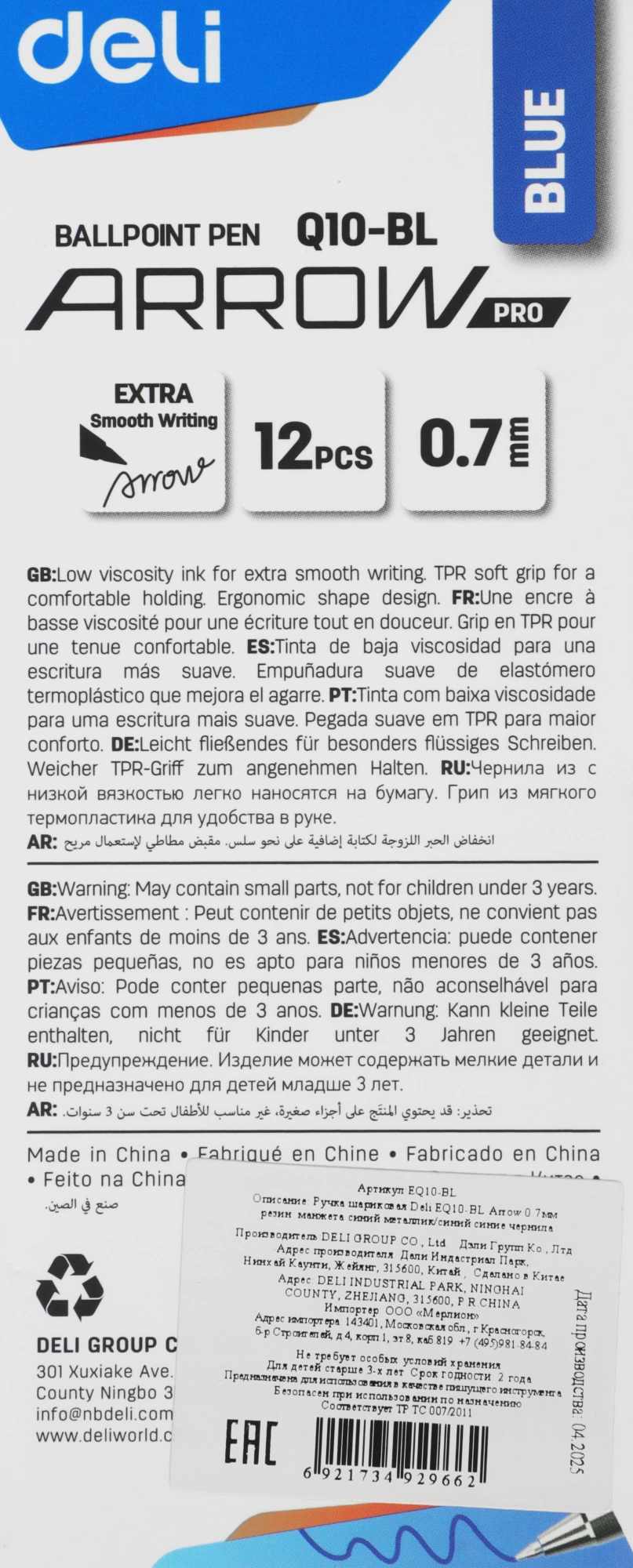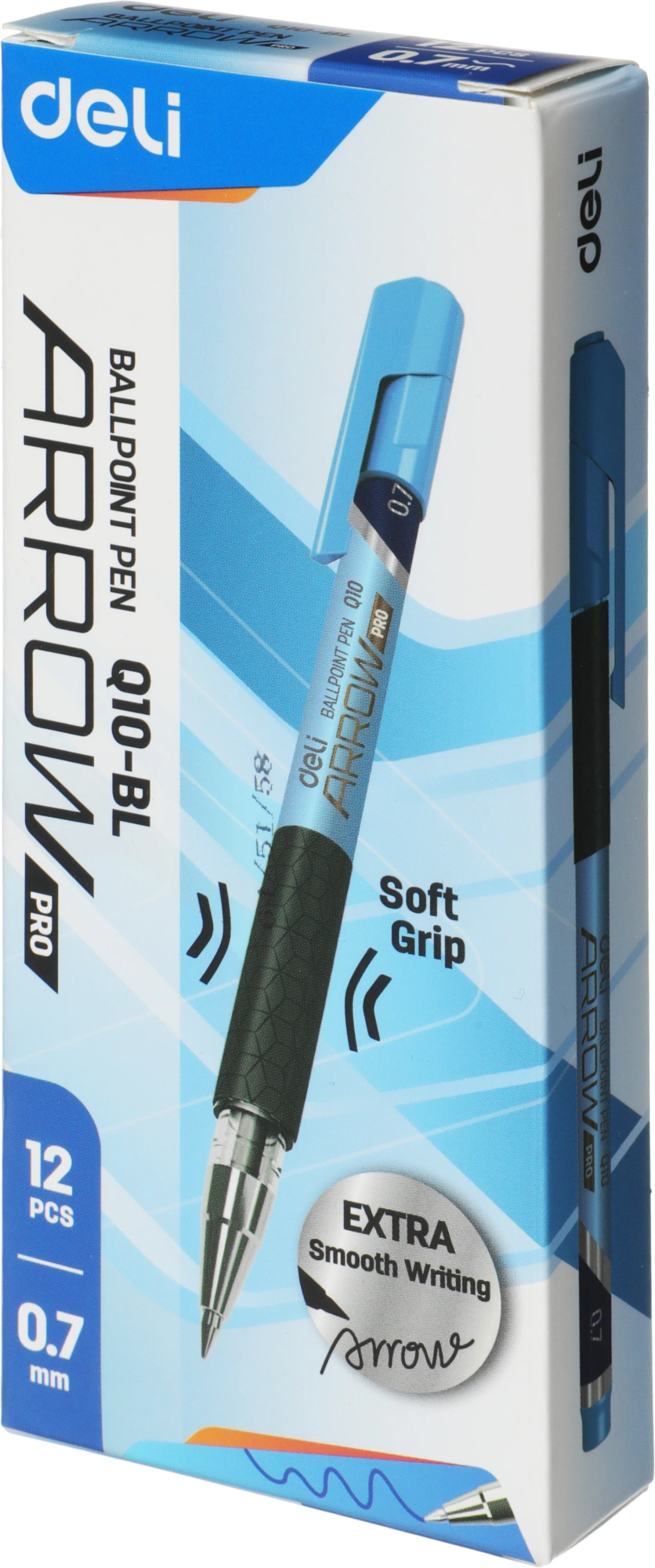 Ручка шариков. Deli Arrow EQ10-BL синий мет./синий d=0.7мм син. черн. резин. манжета (Только Упаковками 12)