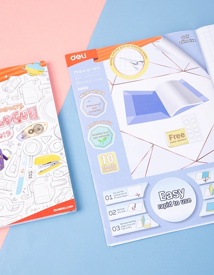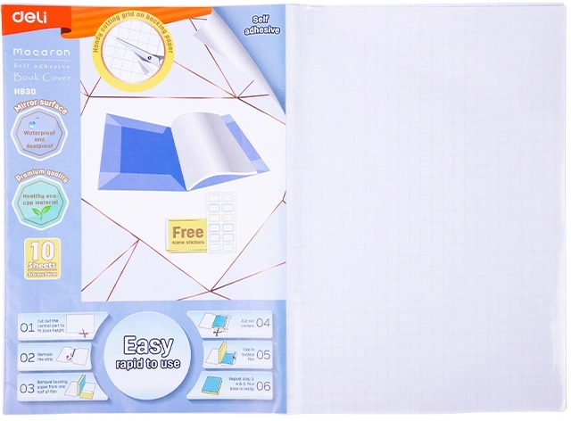 Пленка Deli EH830 Macaron для книги (набор 10шт) ПП 80мкм гладкая прозр. 360х500мм (Только Упаковками 50)