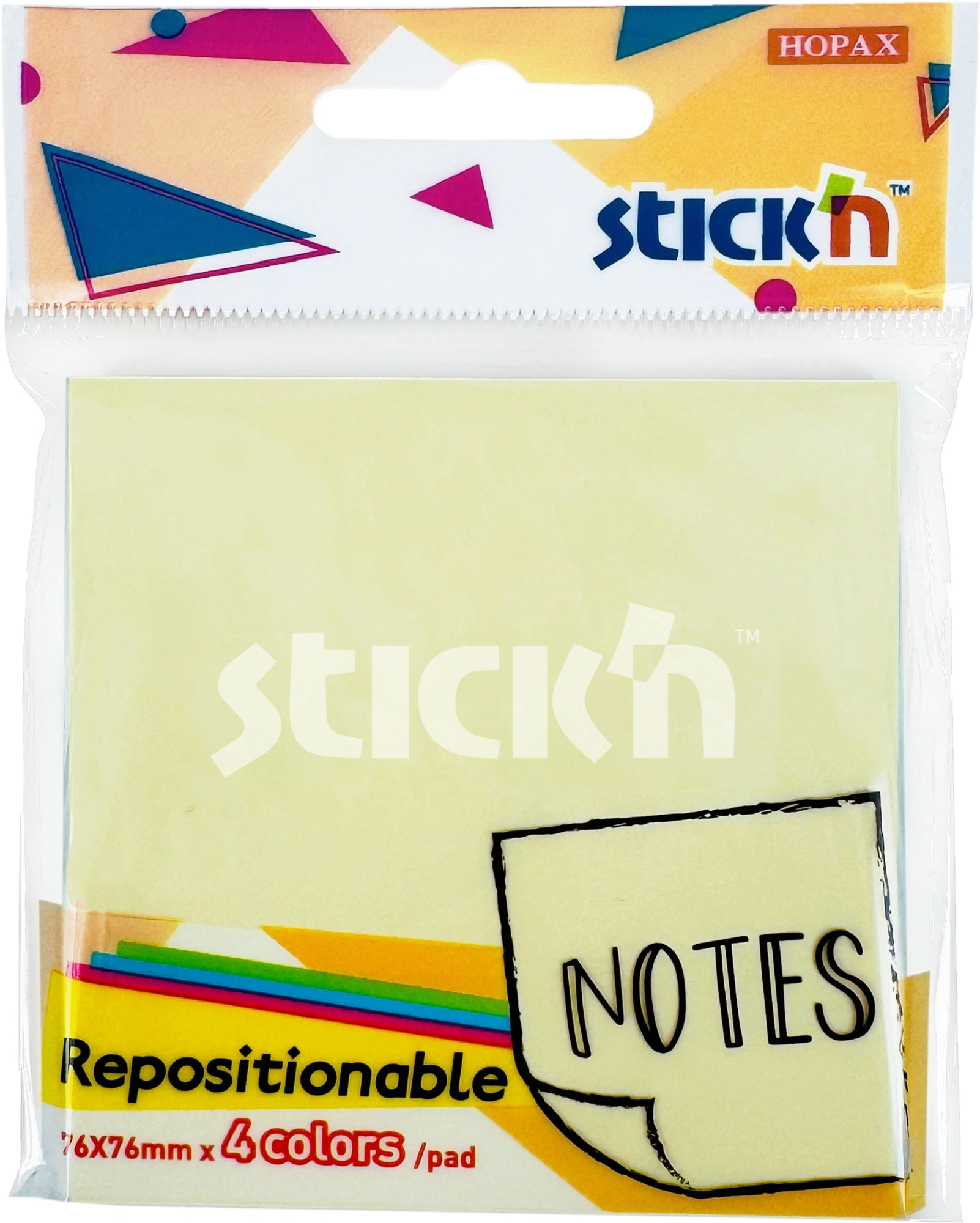 Блок самоклеящийся бумажный Stick`n 27082 76x76мм 80лист. 70г/м2 пастель ассорти 4цв.в упак. (Только Упаковками 12)