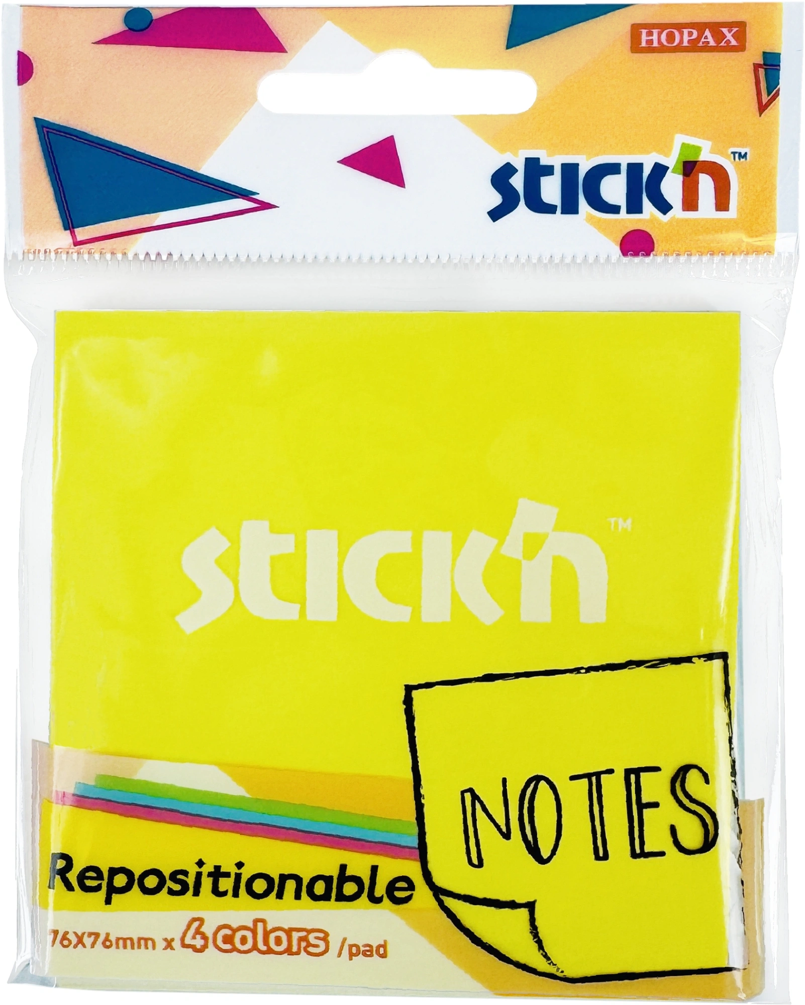 Блок самоклеящийся бумажный Stick`n 27083 76x76мм 80лист. 70г/м2 неон ассорти 4цв.в упак. (Только Упаковками 12)