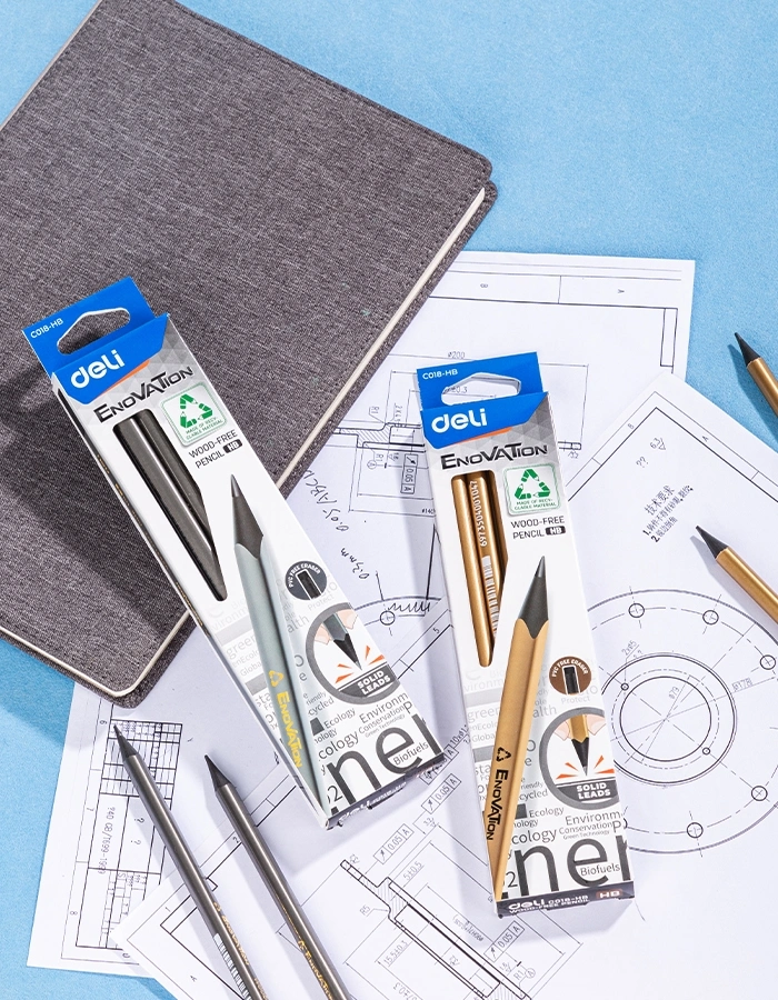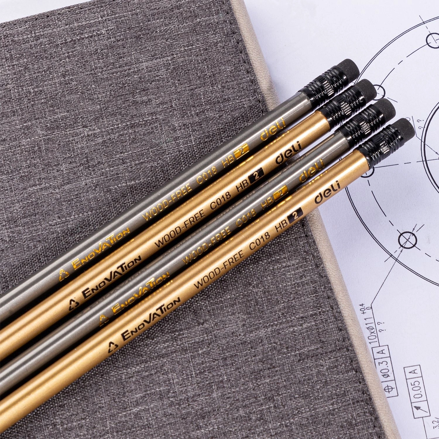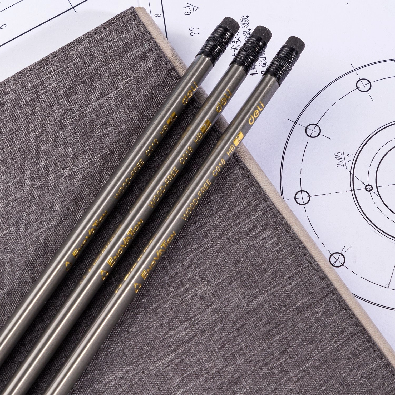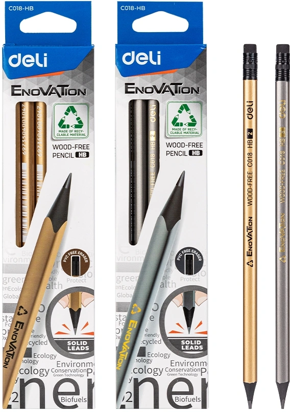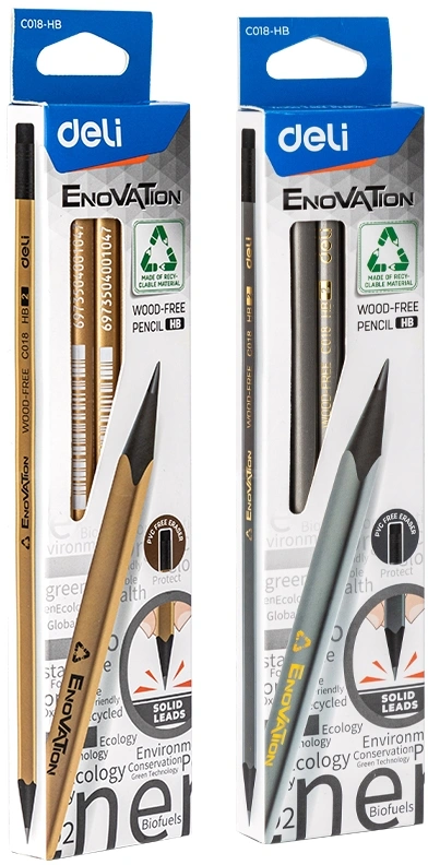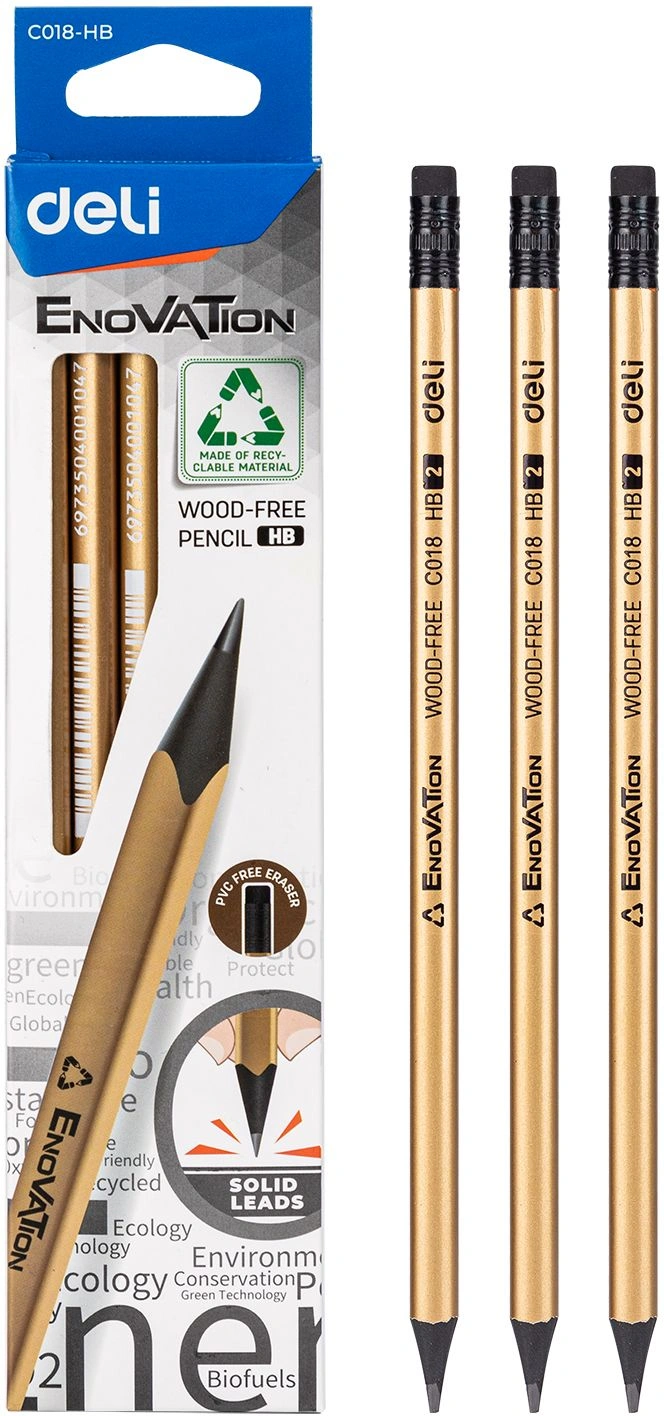 Карандаши ч/г Deli EC018-HB Enovation HB трехгран. пластик карт.кор. (12шт) ластик (Только Упаковками 6)