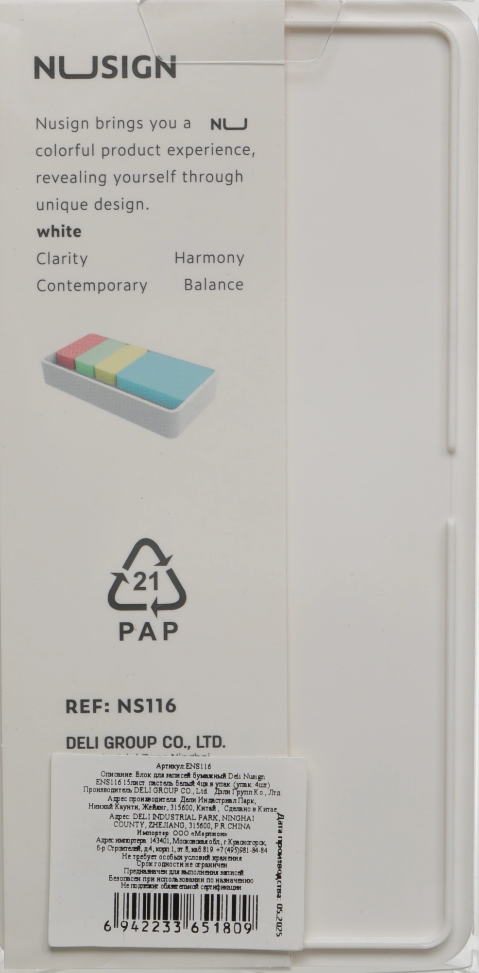 Подставка Deli NS116 Nusign для стикеров стикеры 70х52мм 1цв 150лист./стикеры 52х24мм 3цв 150лист. 152х76х27мм белый пластик (Только Упаковками 12)