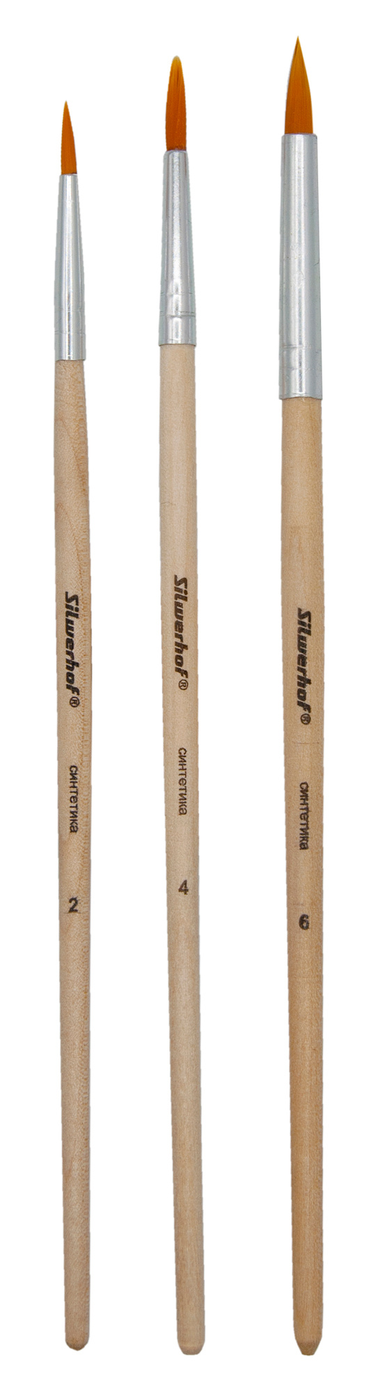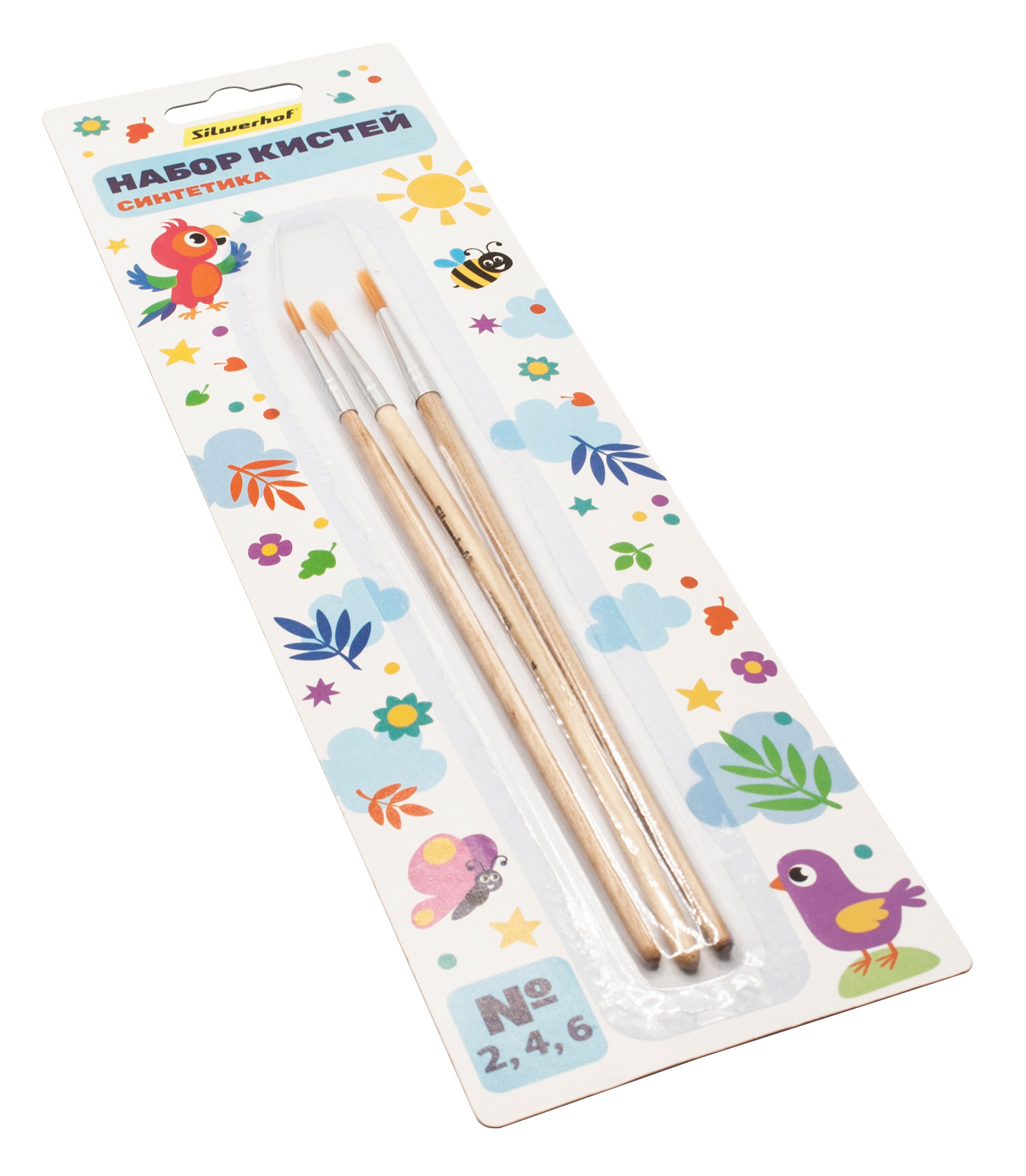 Набор кистей Silwerhof Веселые друзья (наб.3шт) синтетика №2,4,6 дерев.ручка (Кратно 24)