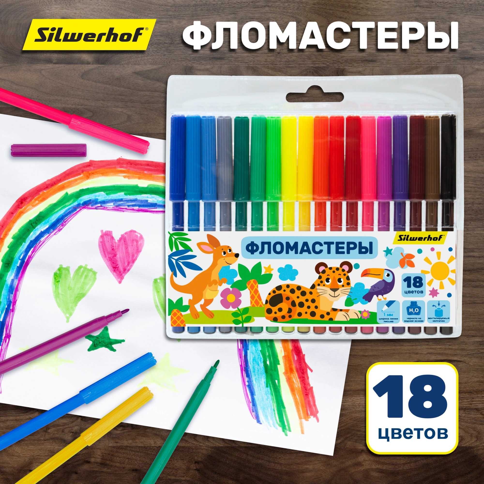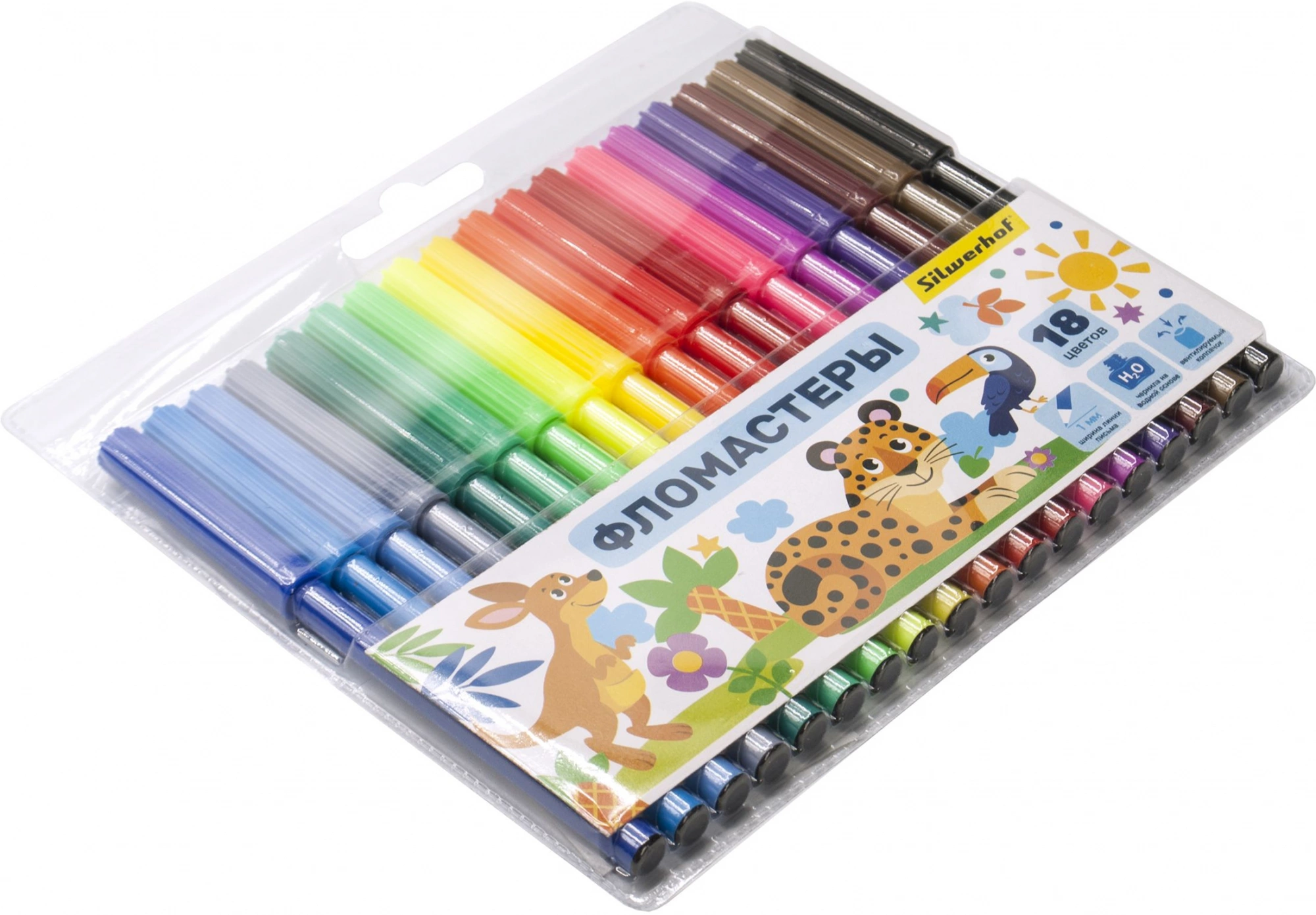 Фломастеры Silwerhof Веселые друзья 7.2мм 125мм круг. Вентилируемый 18цв. пакет с европодвесом (Только Упаковками 12)