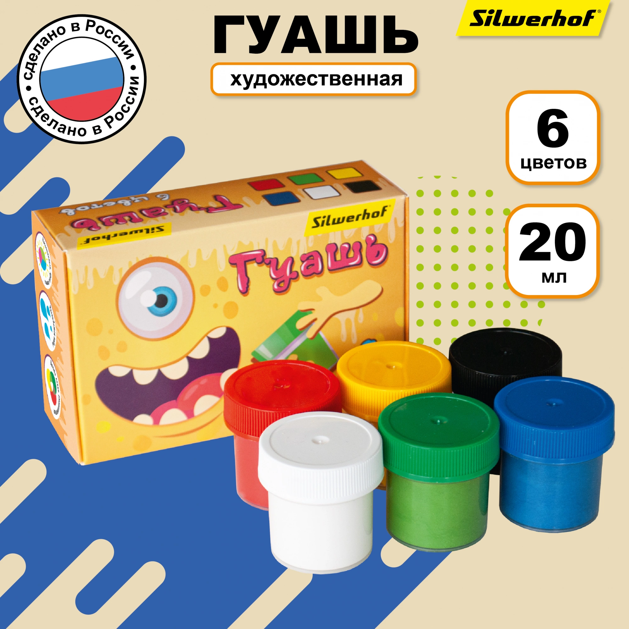 Гуашь Silwerhof Монстрики 6цв. бан. 20мл. картон.кор. (Только Упаковками 32)