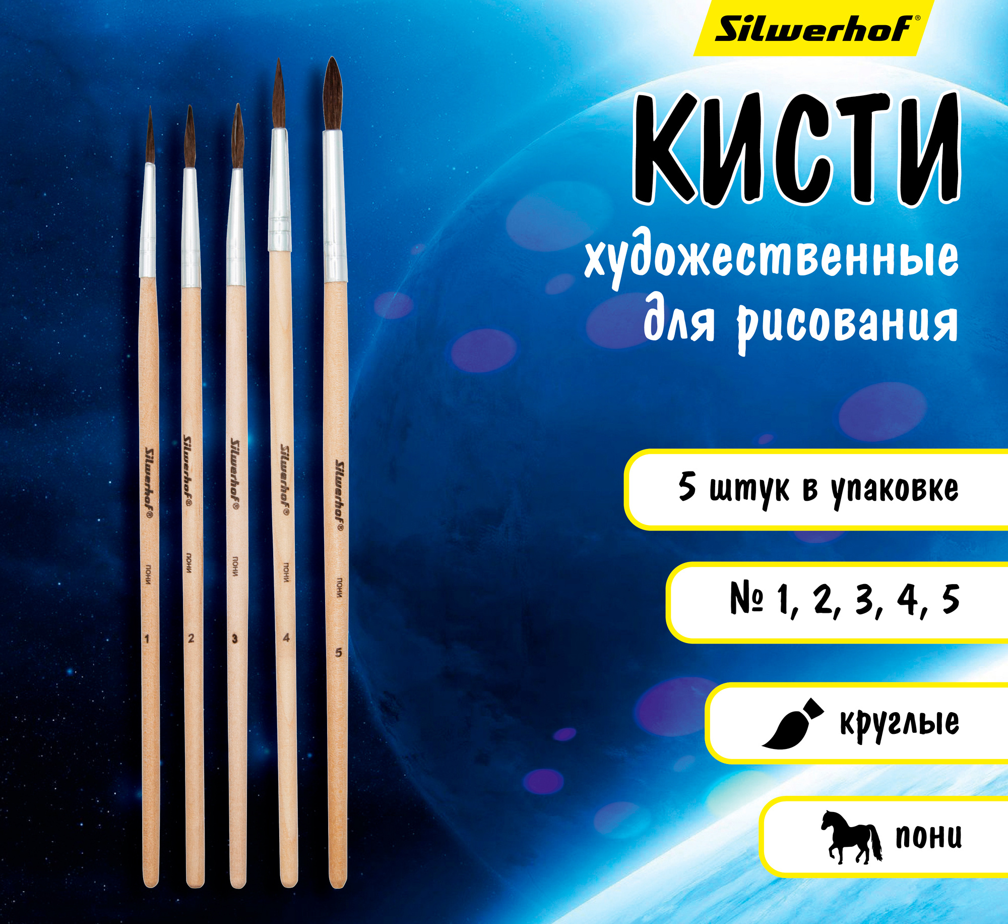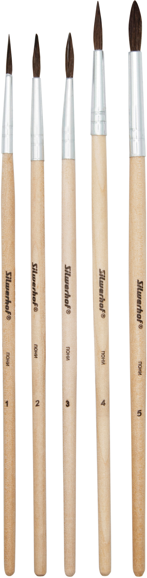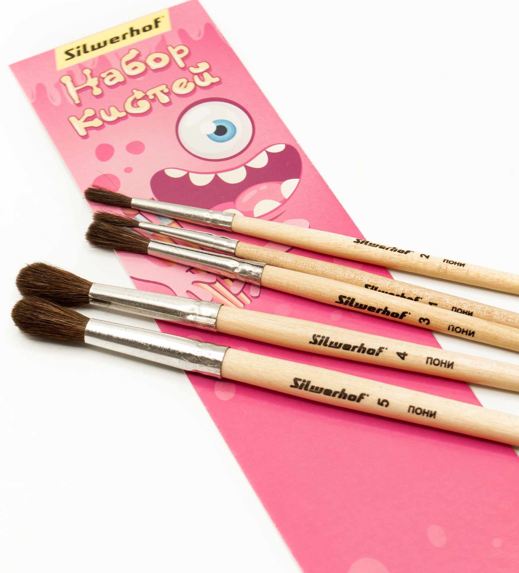 Набор кистей Silwerhof Монстрики (наб.5шт) пон.круг.№1-5 дерев.лакир.ручка (Только Упаковками 10)