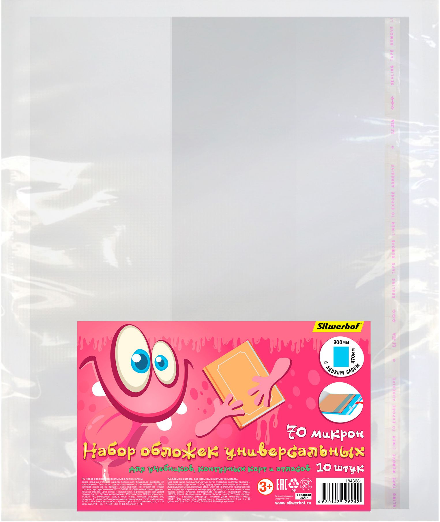 Обложка Silwerhof 382177 Монстрики для учебника с липк.сл. (набор 10шт) ПП 70мкм гладкая прозр. 300х470мм (Только Упаковками 10)