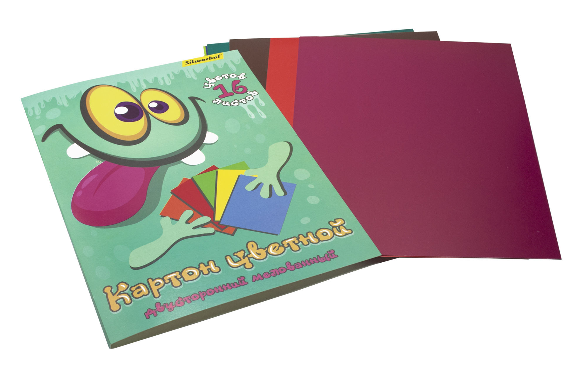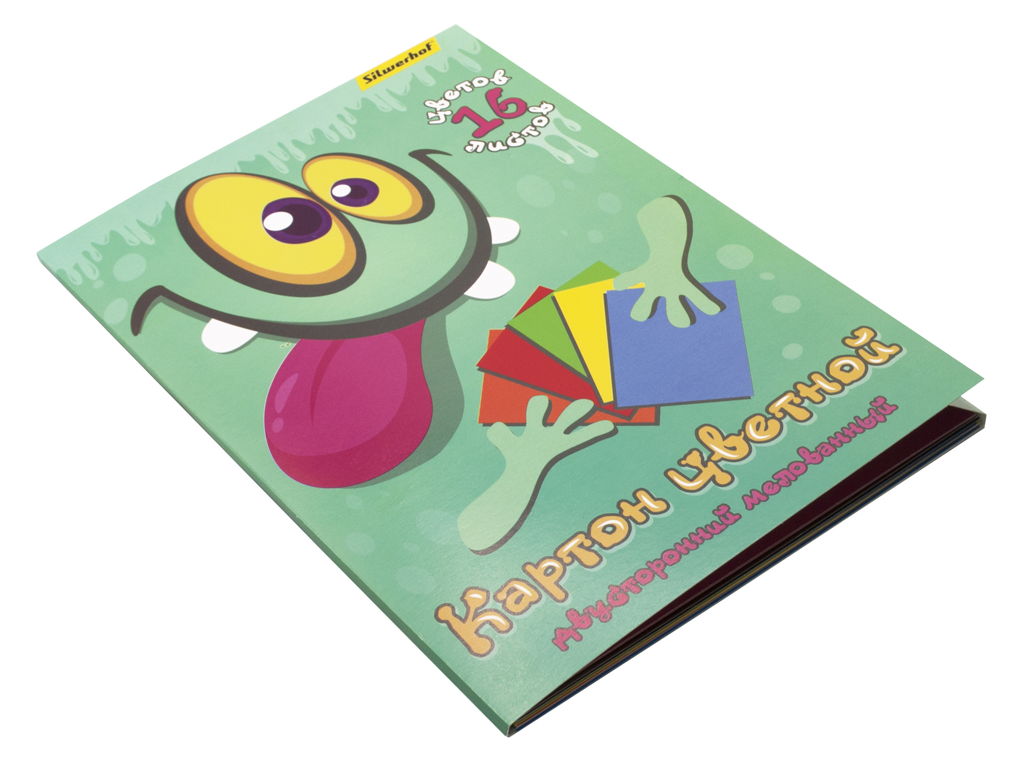 Картон цветной Silwerhof двустор.мелов. 16л. 16цв. A4 Монстрики папка (Только Упаковками 20)