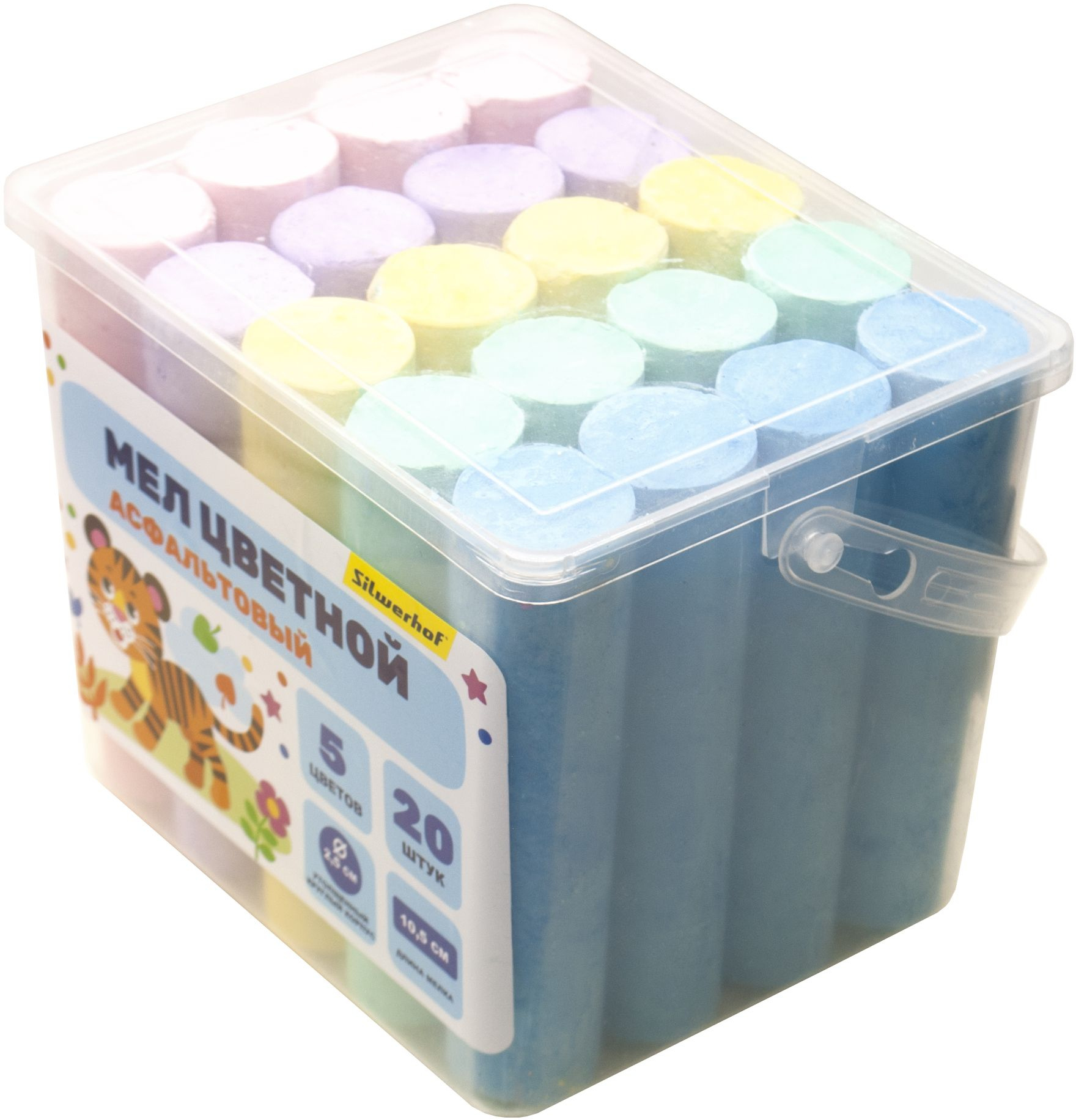 Мел цветной асфальтовый Silwerhof Веселые друзья кругл. 5цв. (20шт) пласт.вед.
