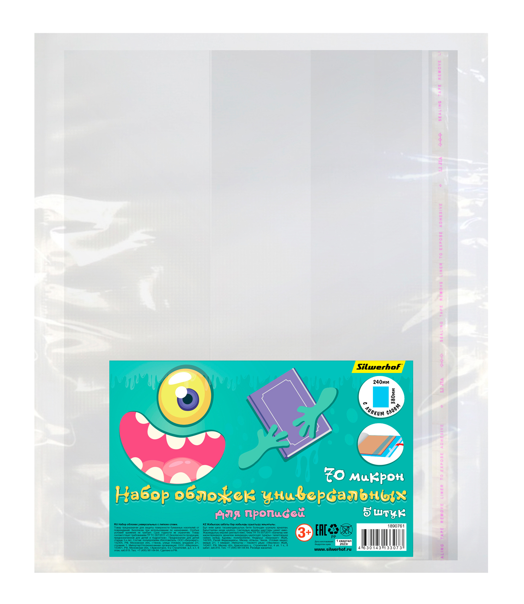 Обложка Silwerhof 382159 Монстрики с липк.сл. (набор 5шт) ПП 70мкм гладкая прозр. 240х380мм (Только Упаковками 20)
