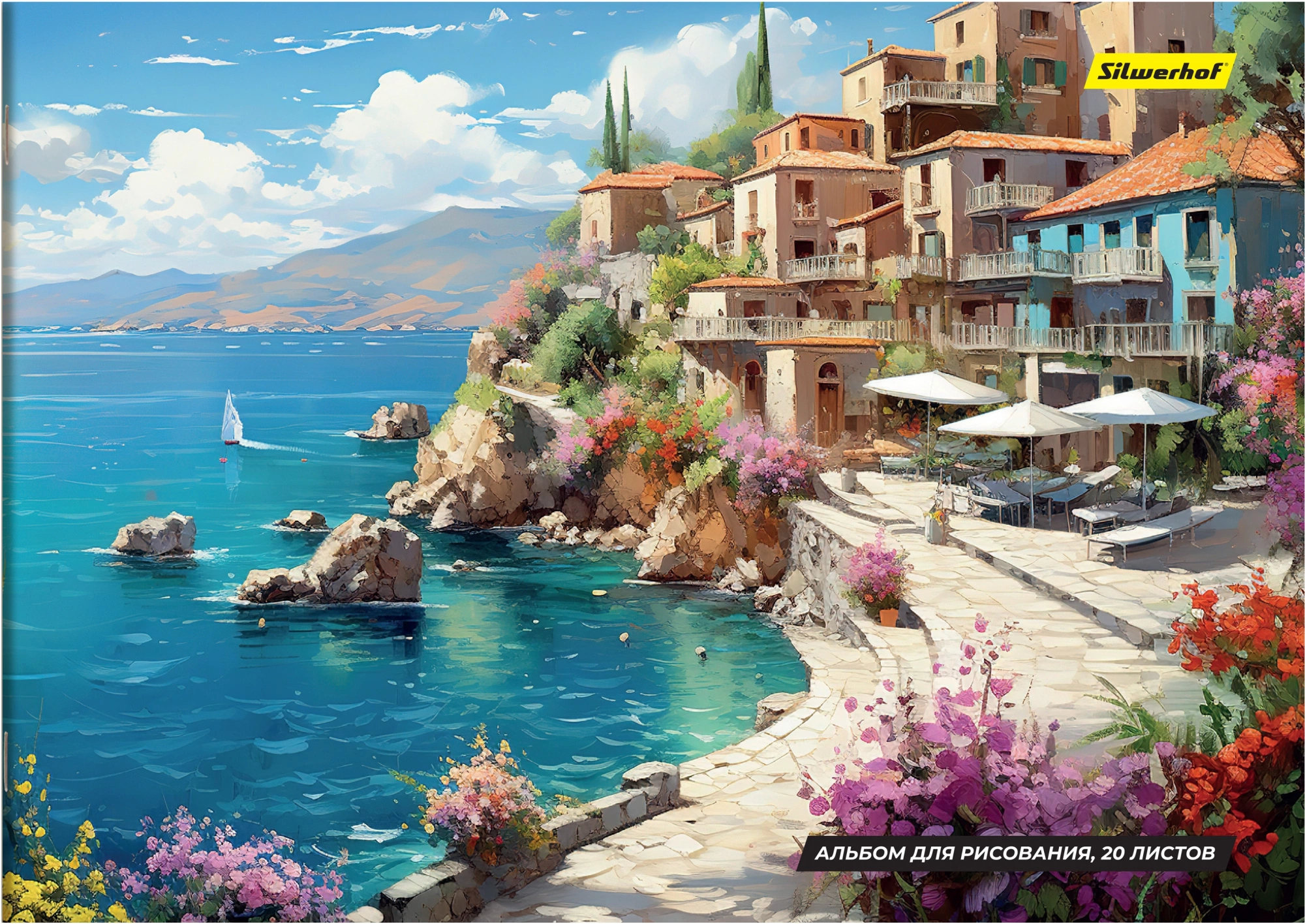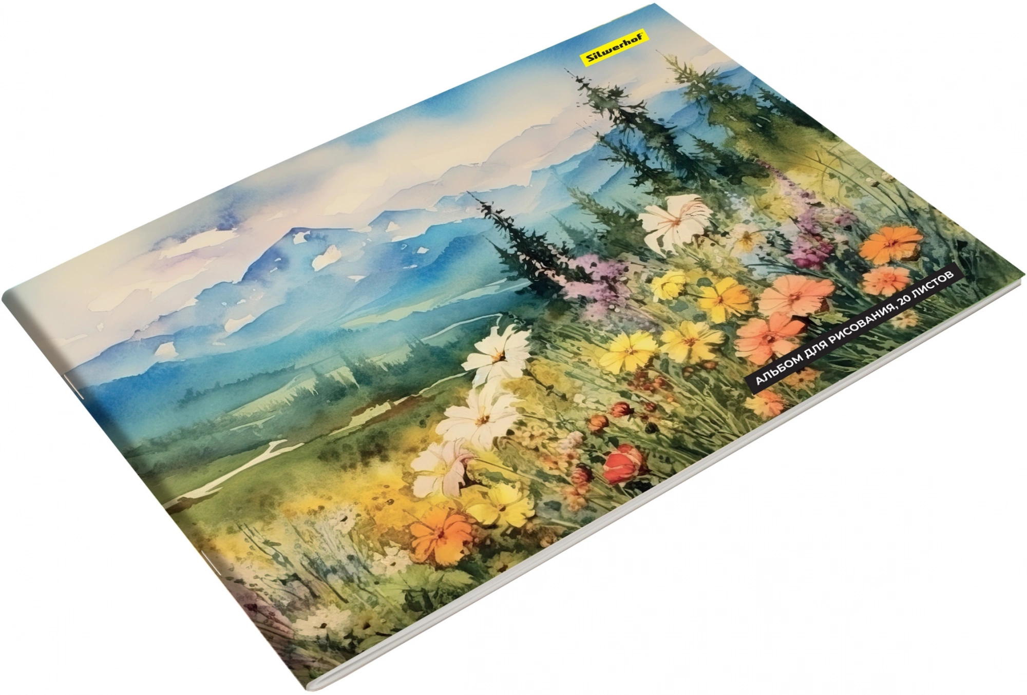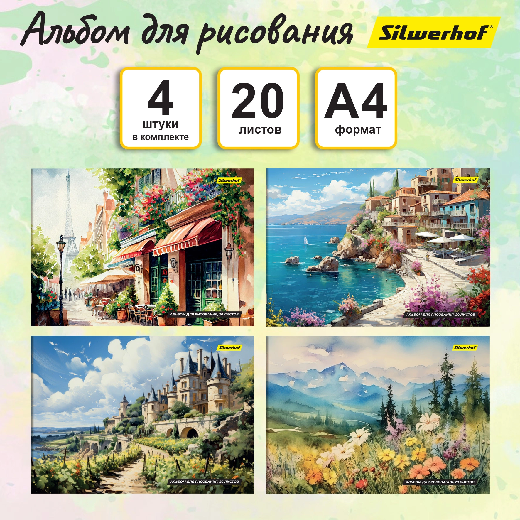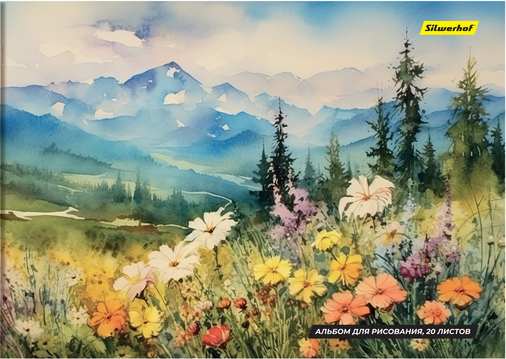 Альбом для рисования Silwerhof 20л. A4 Акварельные пейзажи 4диз. мел.картон скрепка (упак.:4шт) (Только Упаковками 10)