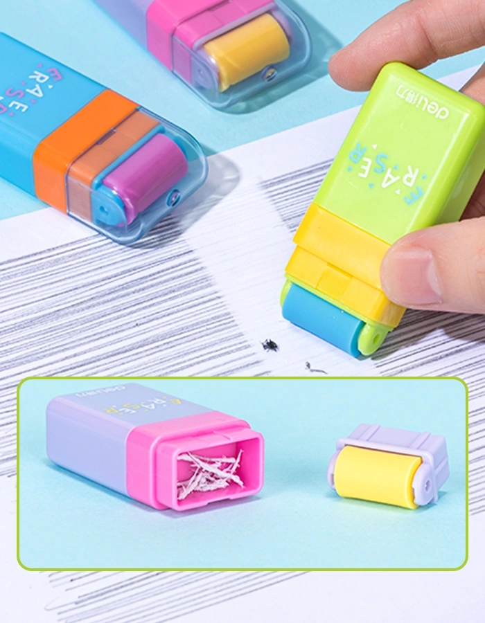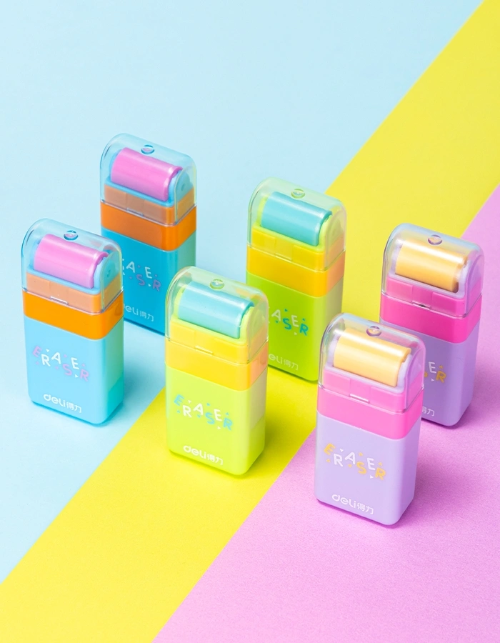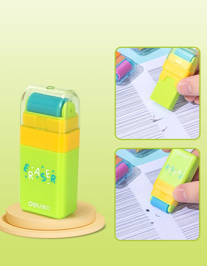 | Описание | Ластик Deli, ПВХ, 60х26х16 мм, липкий ролик для удаления остатков ластика |