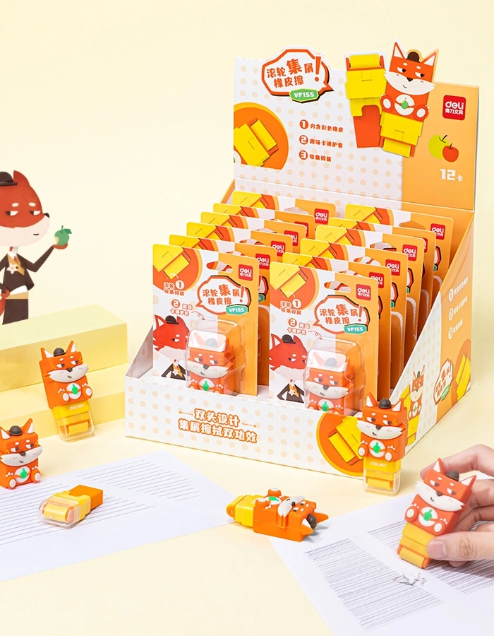 Ластик Deli VP155 лиса 150x89x28мм ПВХ ассорти