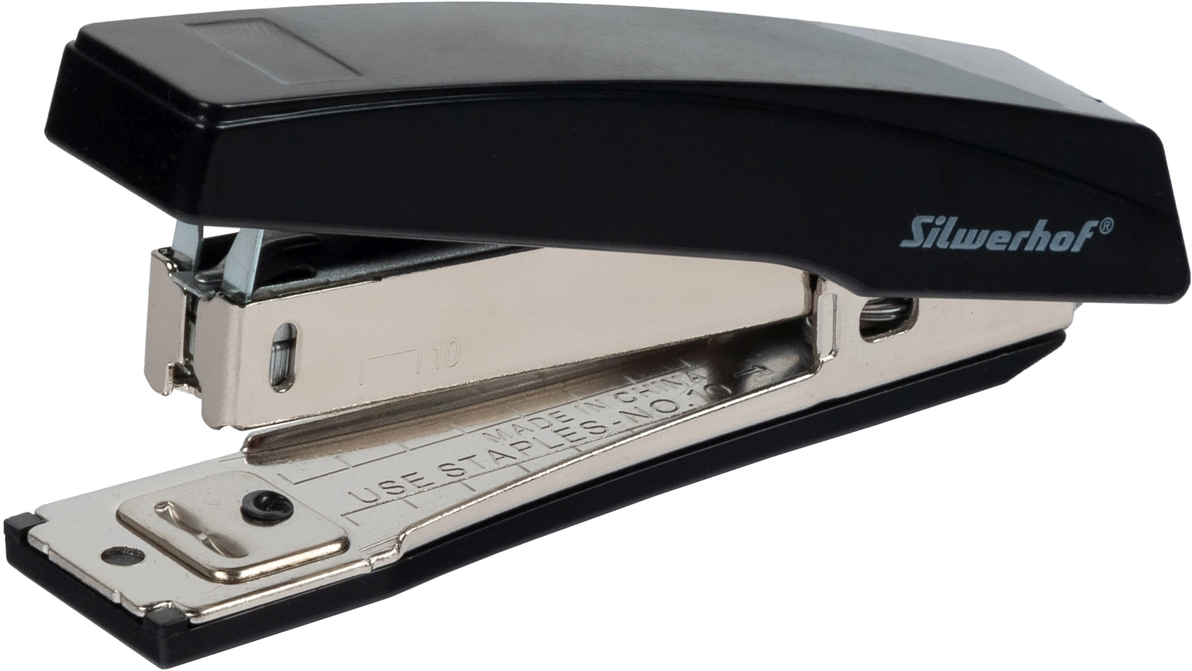 Степлер Silwerhof Eco N10 (15листов) встроенный антистеплер черный 50скоб пластик коробка (Только Упаковками 24)