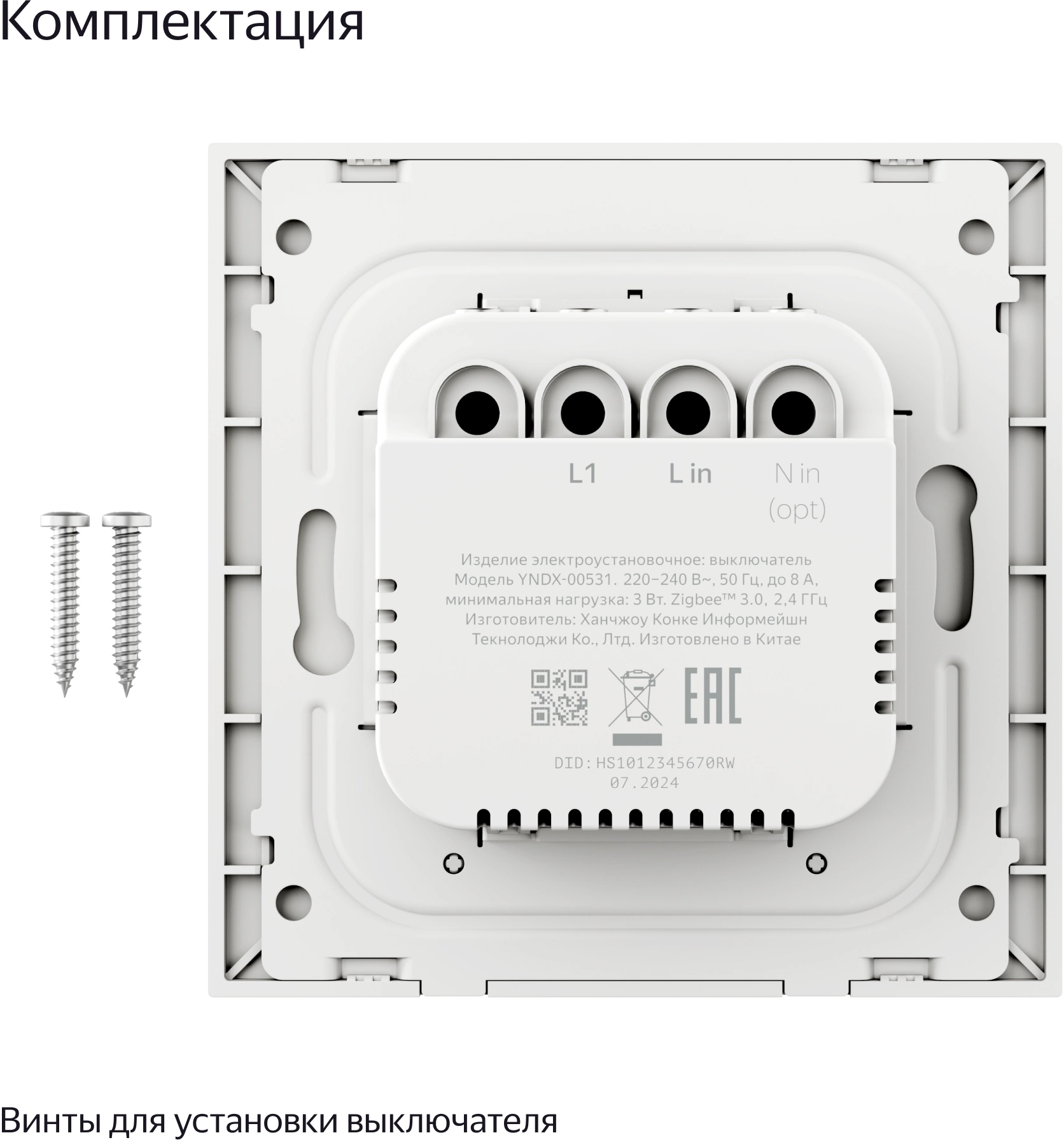Умный выключатель Yandex YNDX-00531 1-нокл. универсальный белый