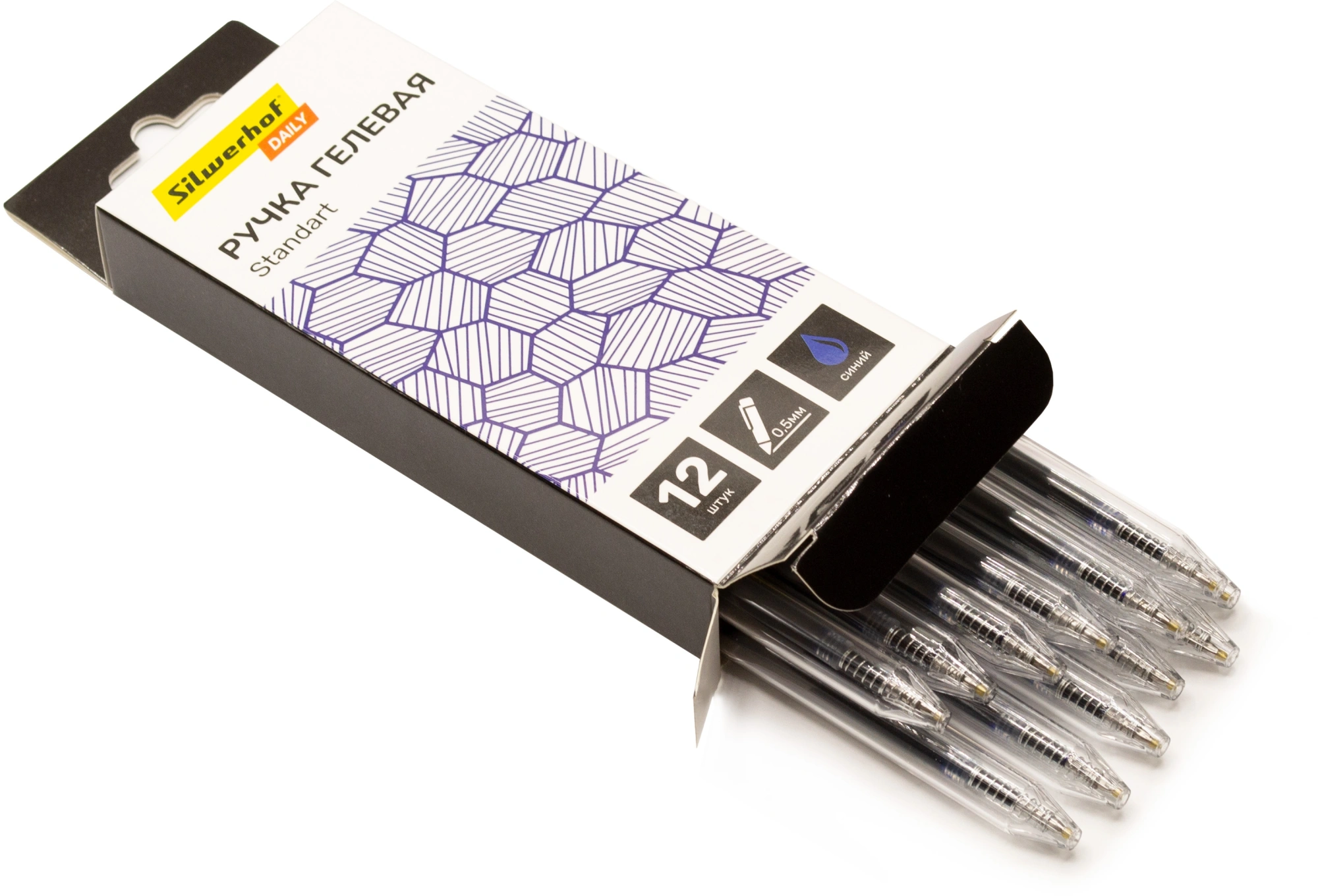 Набор ручек гелев. автоматическая Silwerhof Daily NG Standart d=0.5мм син. черн. кор.карт. (12шт) линия 0.3мм (Только Упаковками 12)