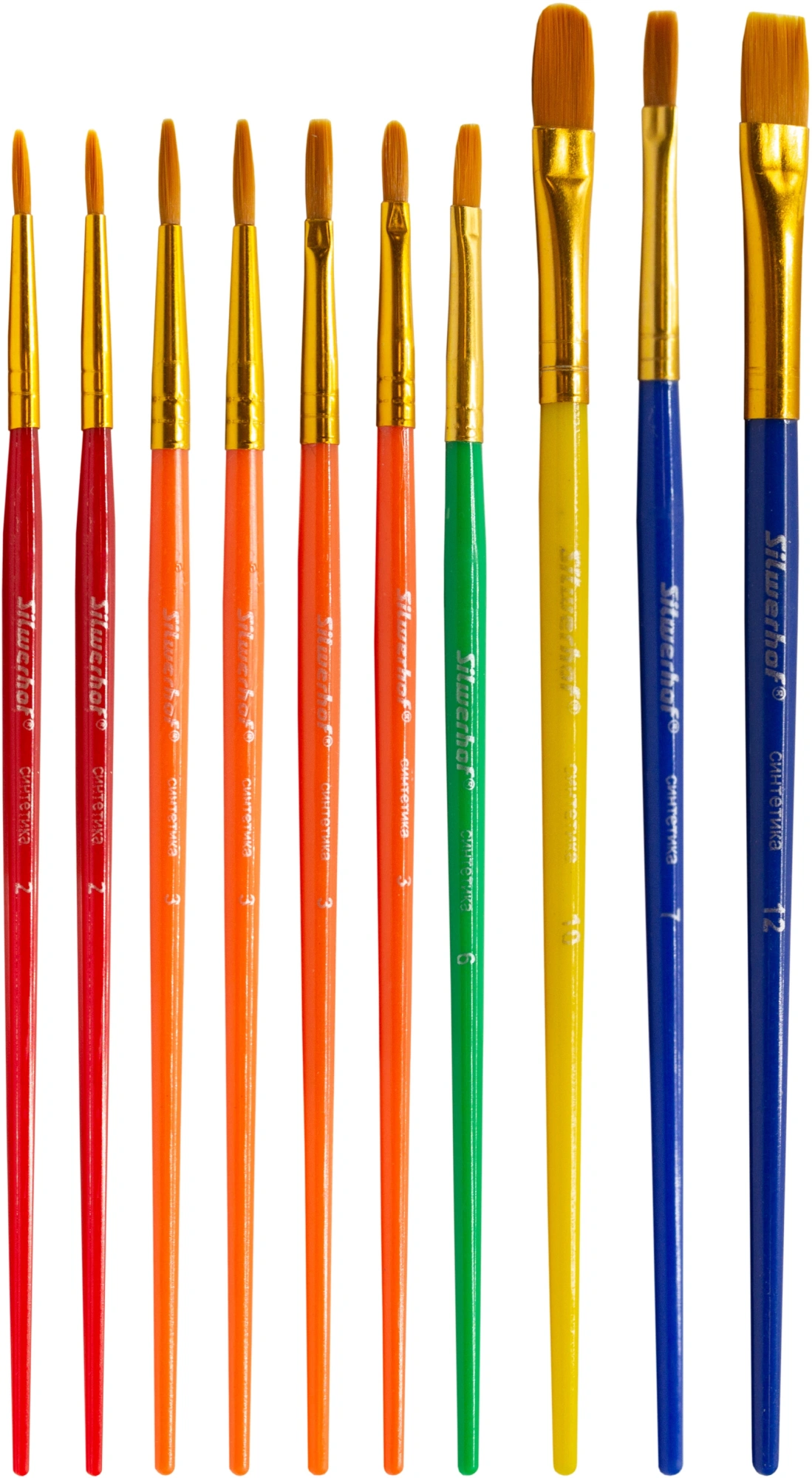 Набор кистей Silwerhof Color (наб.10шт) синт.кр.№2,3/плос.№3,6,7,12/овал.№3,10 (Только Упаковками 24)