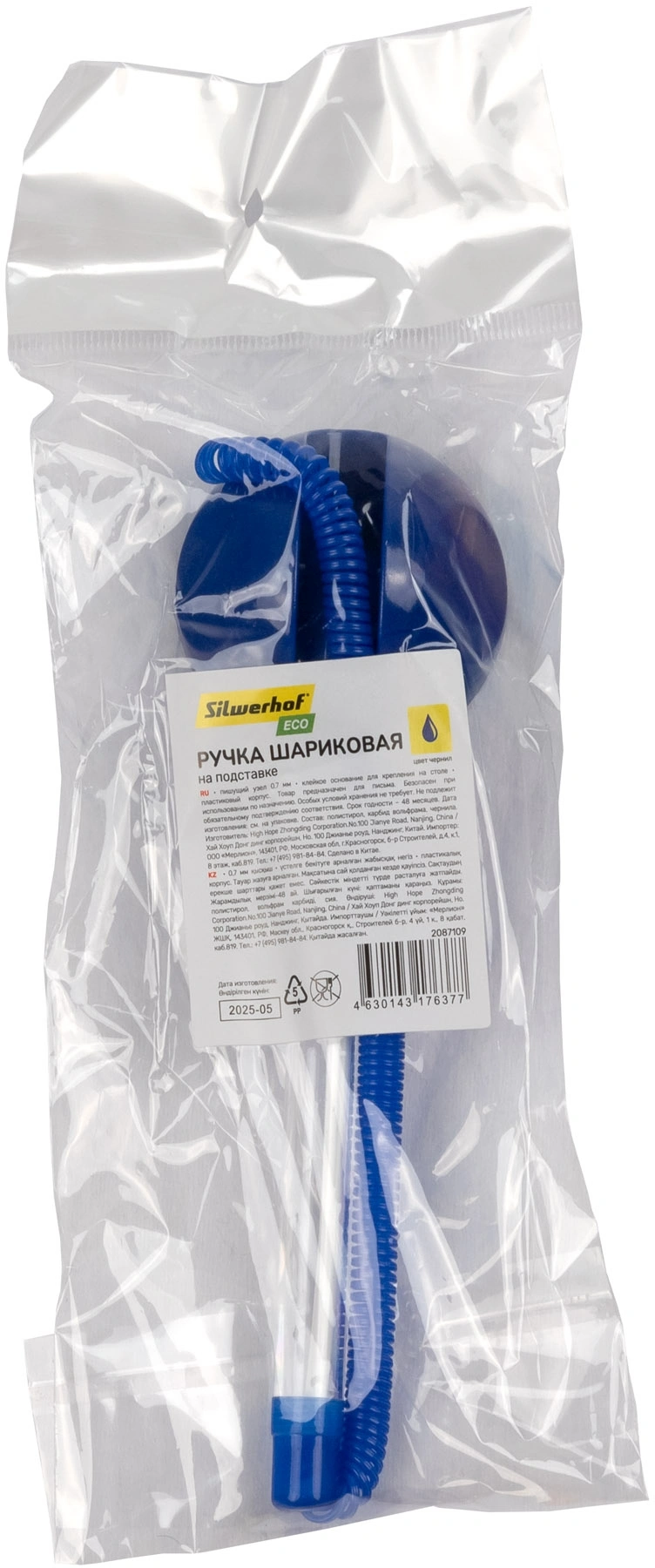 Ручка шариков. Silwerhof Eco синий d=0.7мм син. черн. индив. пак.ев. на подставке сменный стержень линия 0.5мм (Только Упаковками 24)