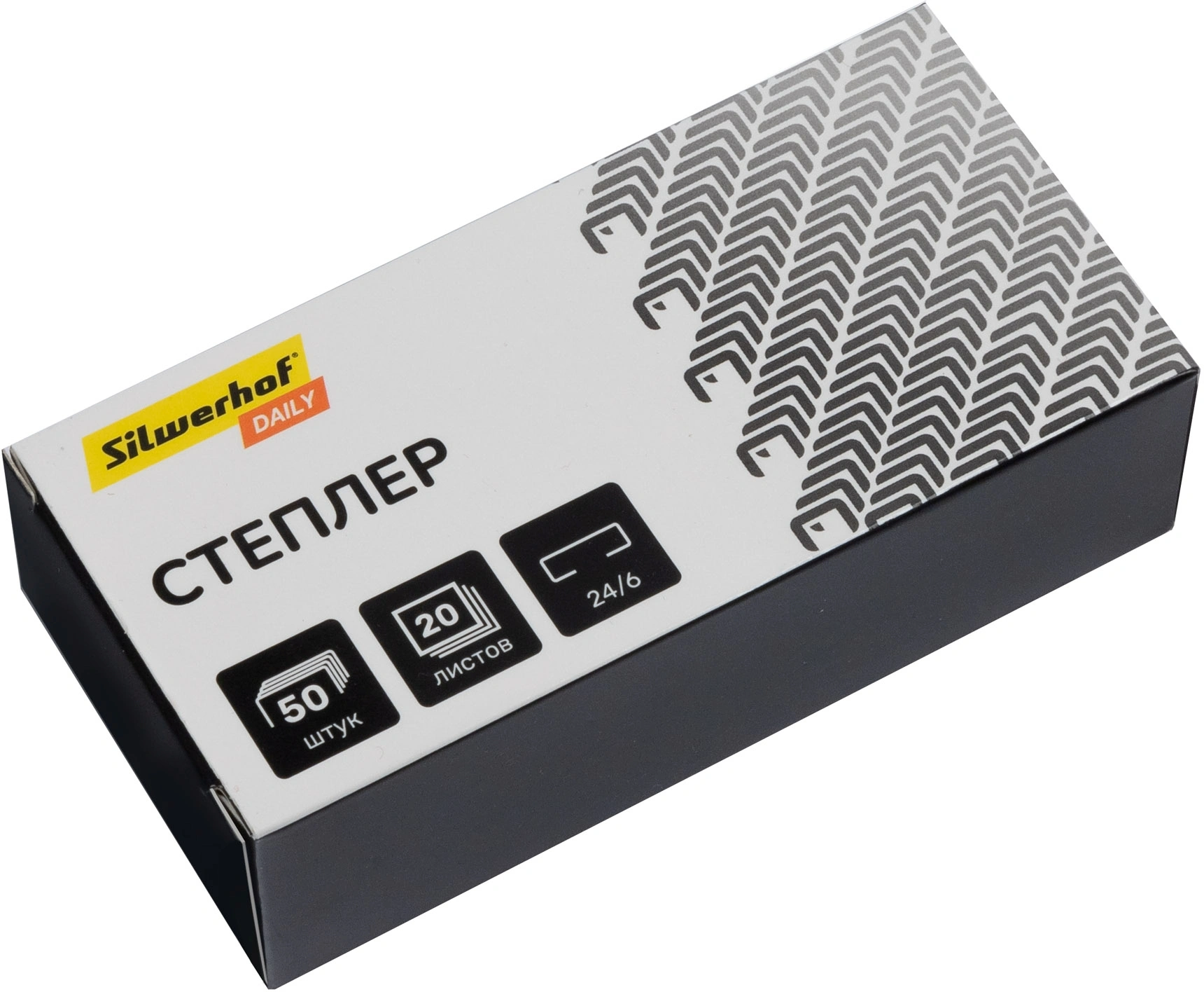 Степлер Silwerhof Daily 24/6 (20листов) черный 50скоб пластик закрытый коробка (Только Упаковками 12)