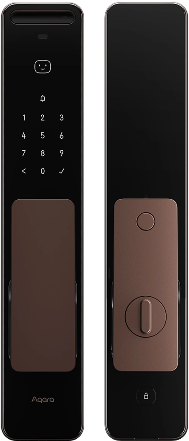 Умный замок Aqara ML-D01D врезной разбл.отпеч.паль./код/пар/NFC/прил/мех.кл 5000mAh бронзовый/черный