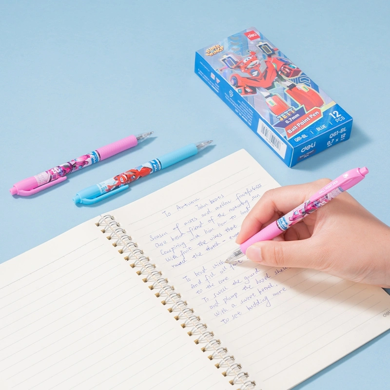 Ручка шариков. автоматическая Deli Super Wings (EQ61-BL) ассорти d=0.7мм син. черн. 1стерж. пулевидный пиш. наконечник кругл. резин. манжета чернила пониженной вязкости