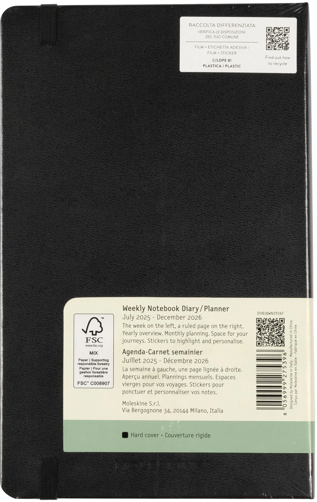 | Описание | Записная книжка-еженедельник Moleskine в твердой обложке рассчитана на 18 месяцев, начиная с июля и заканчивая декабрем. На левой странице отображаются намеченные на текущую неделю встречи, а правая линованная страница предназначена для записи заметок и идей. |