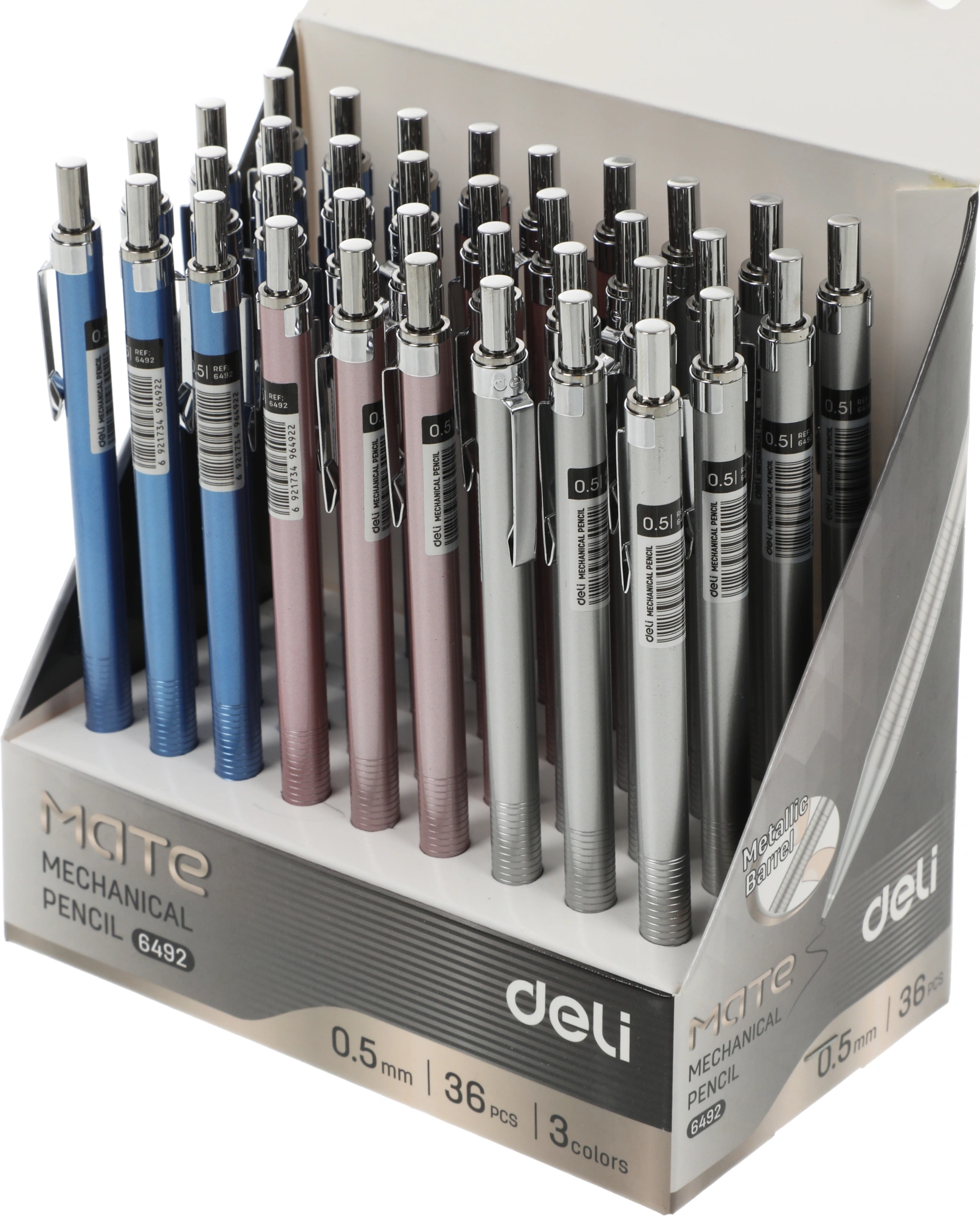 Карандаш мех. Deli E6492 Elite 0.5мм металл ассорти дисплей ластик (Только Упаковками 36)