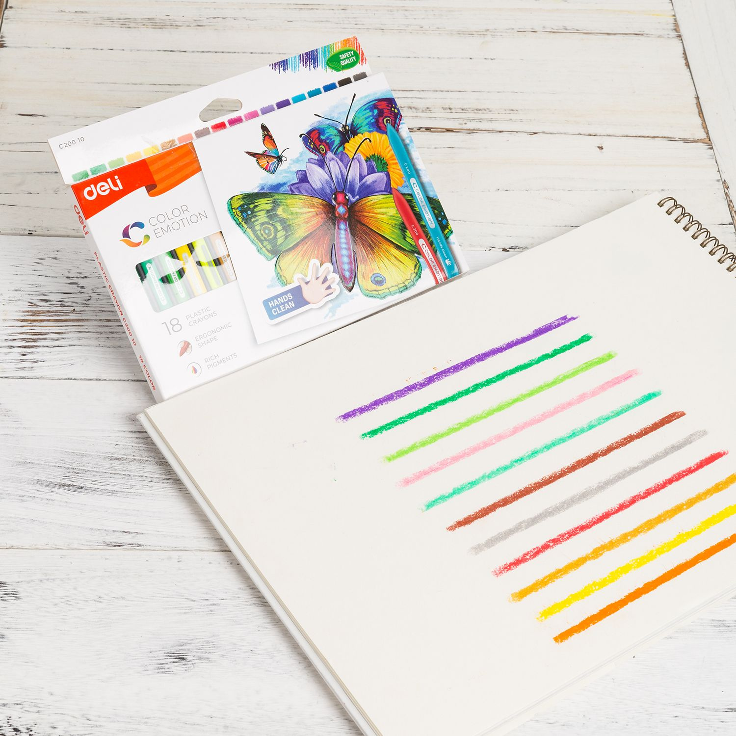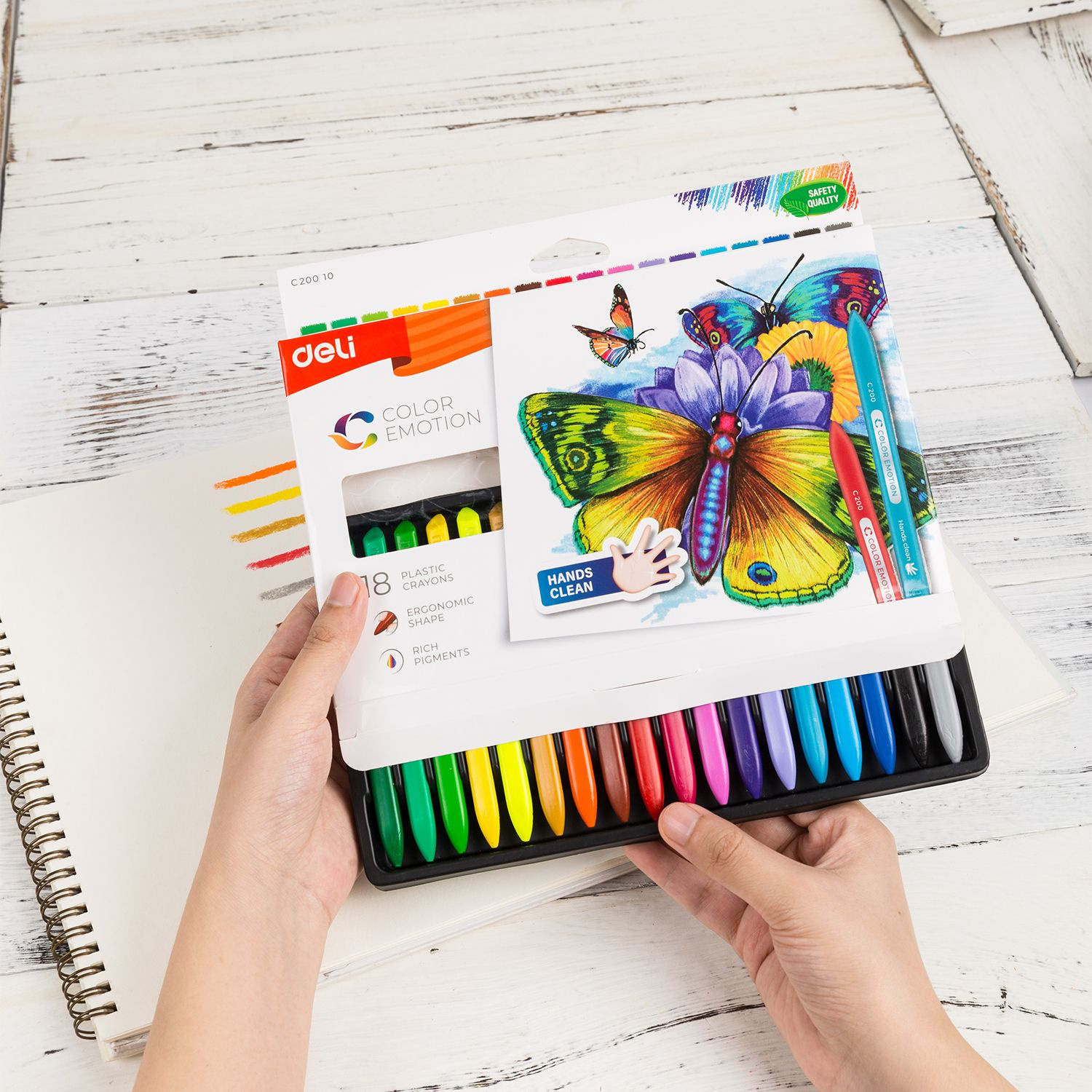 Восковые мелки Deli EC20010 Color Emotion трехгранные 18цв. картон.кор./европод.