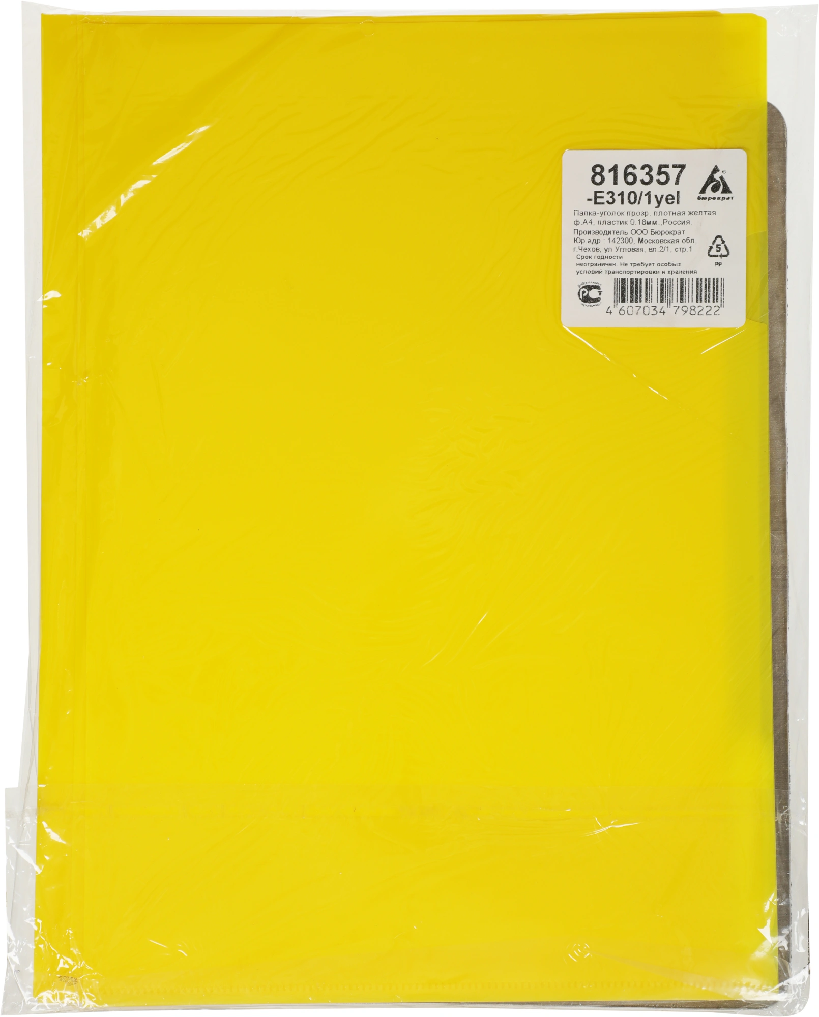 Папка-уголок Бюрократ -E310/1YEL A4 пластик 0.18мм желтый (Только Упаковками 20)