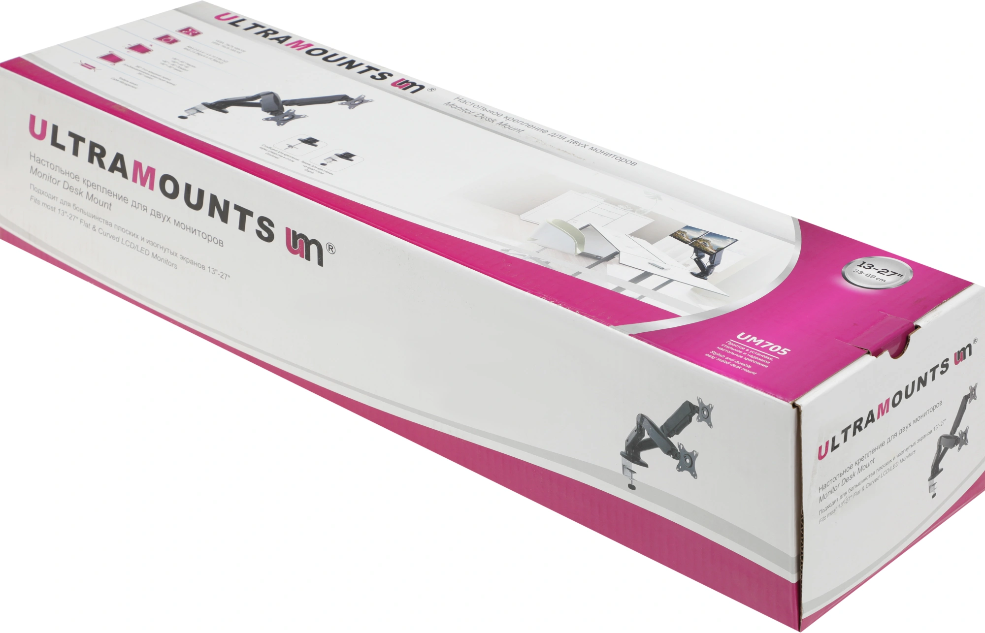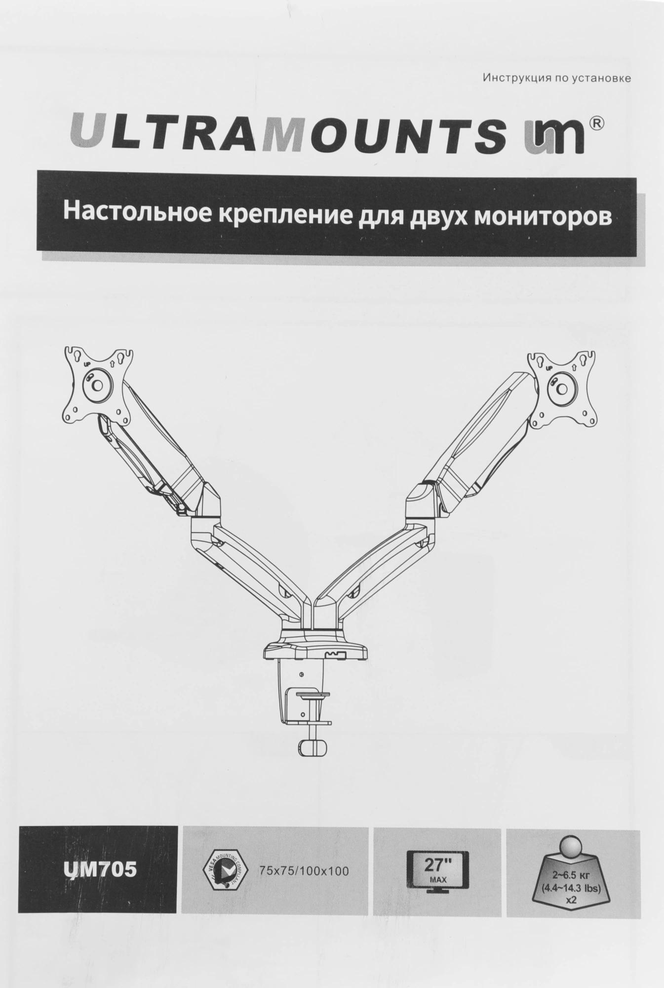 Кронштейн для мониторов Ultramounts UM705 черный 13"-27" макс.13кг настольный поворот и наклон верт.перемещ.