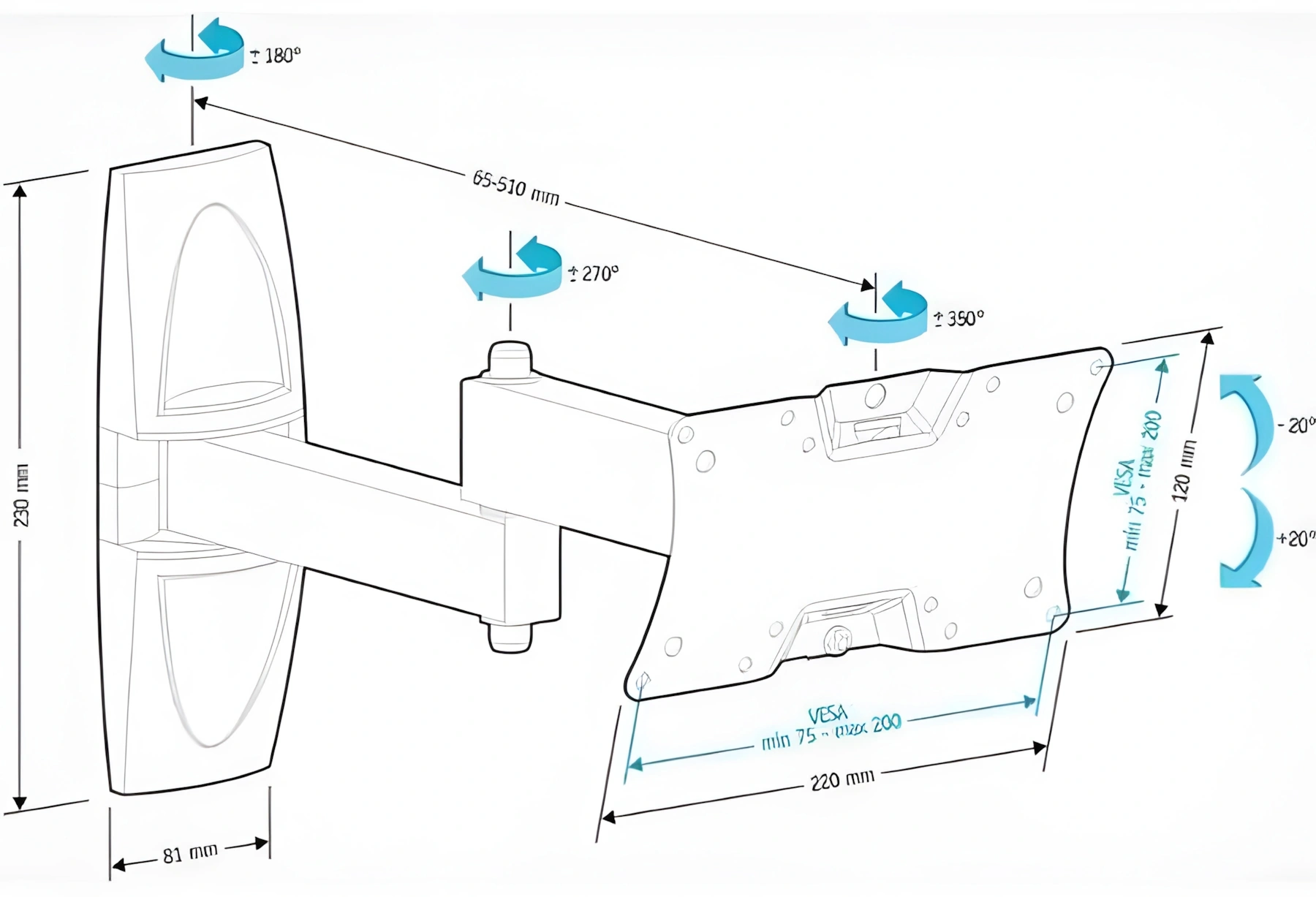 | Способ регулировки | поворотно-выдвижной и наклонный |