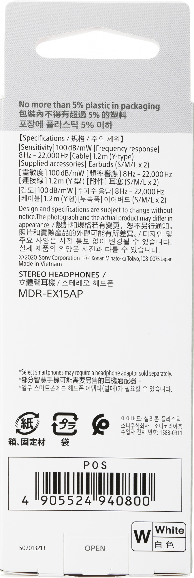 | PartNumber/Артикул Производителя | MDR-EX15APW |