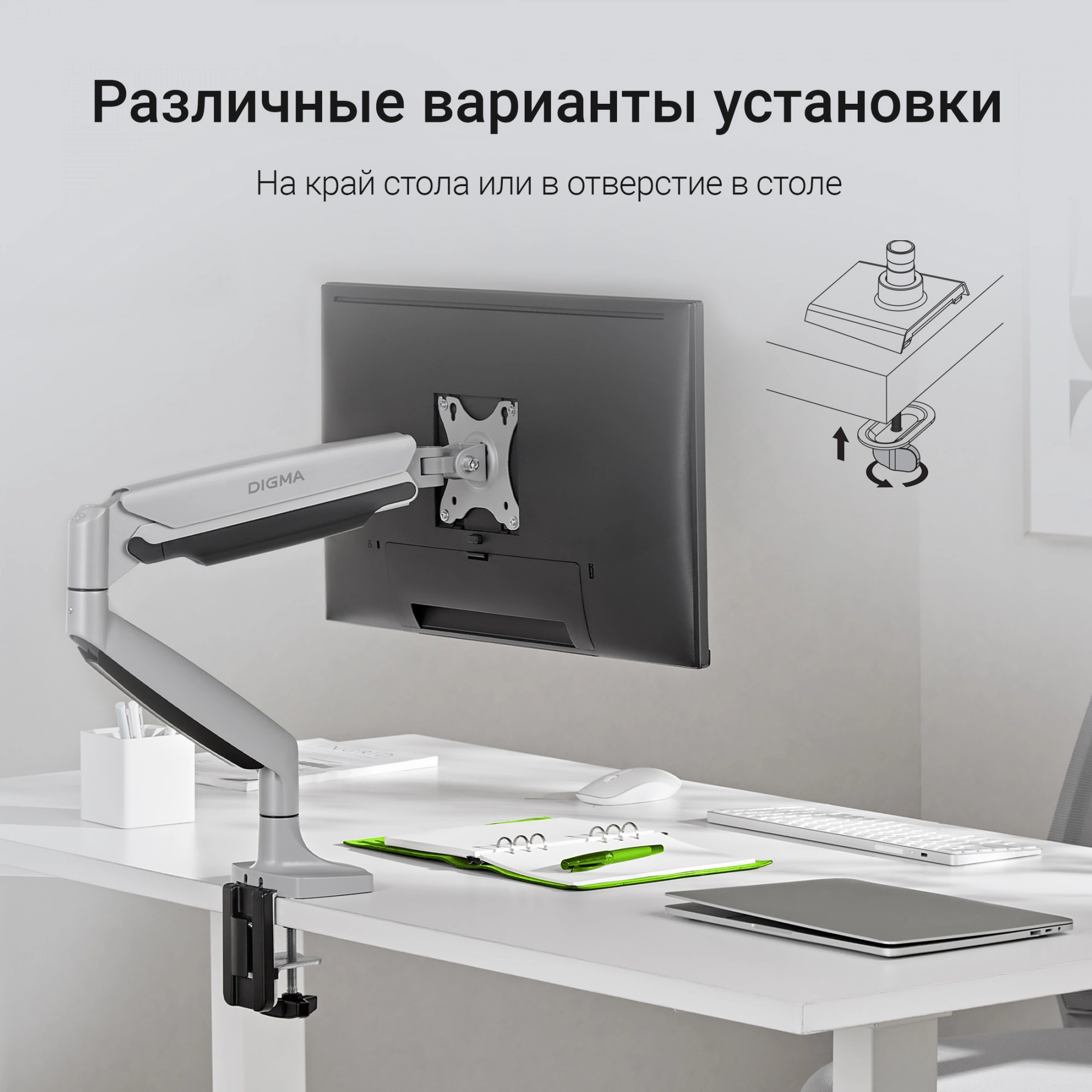 Кронштейн для мониторов ЖК Digma D-MM301 серый 17"-45" макс.15кг крепление к столешнице поворот и наклон