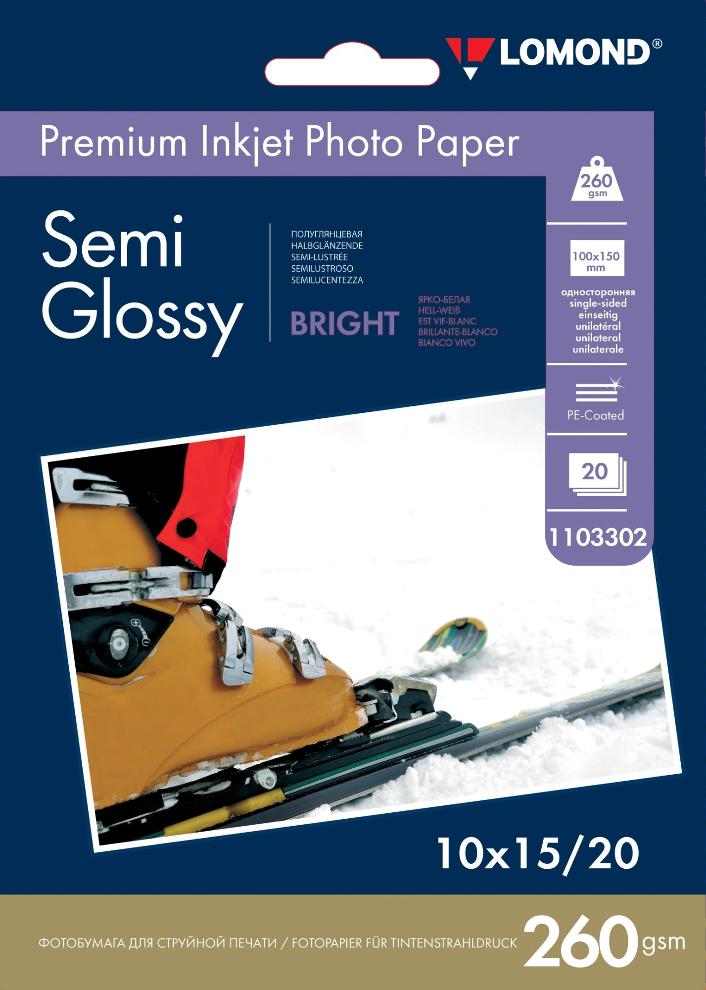 Фотобумага Lomond 1103302 10x15/260г/м2/20л./белый полуглянцевое для струйной печати
