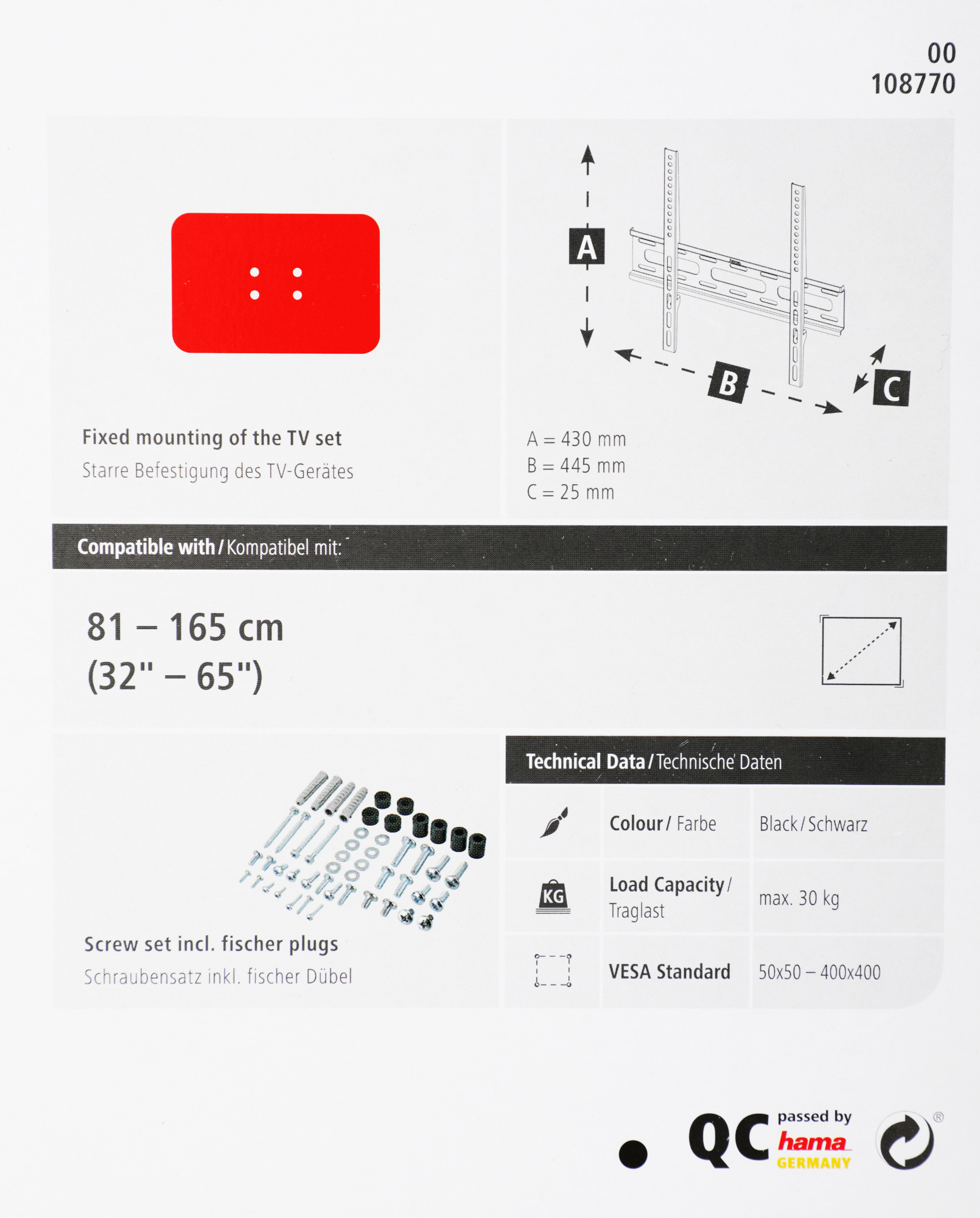 Кронштейн для телевизора Hama H-108770 черный 32"-56" макс.30кг настенный фиксированный